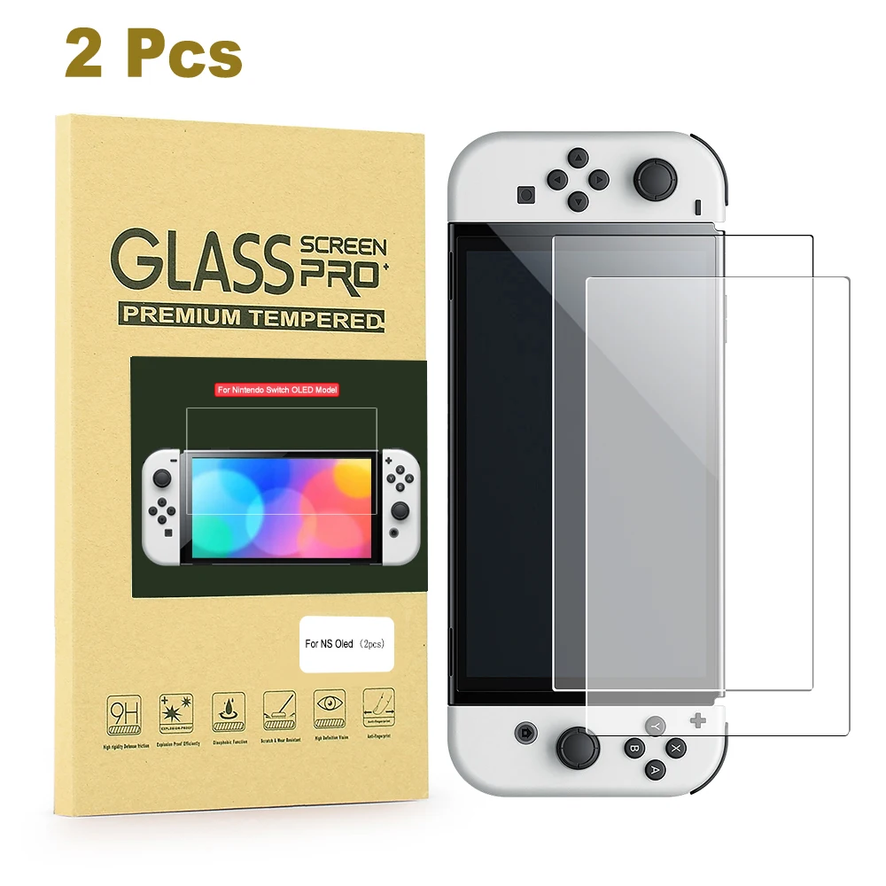 Nintendo Switch OLED 게임 콘솔용 스크래치 방지 9H 눈 보호 유리 필름 버블 프리 강화 유리 화면 보호기