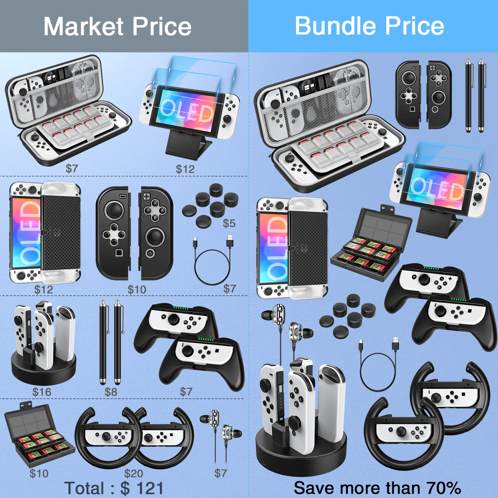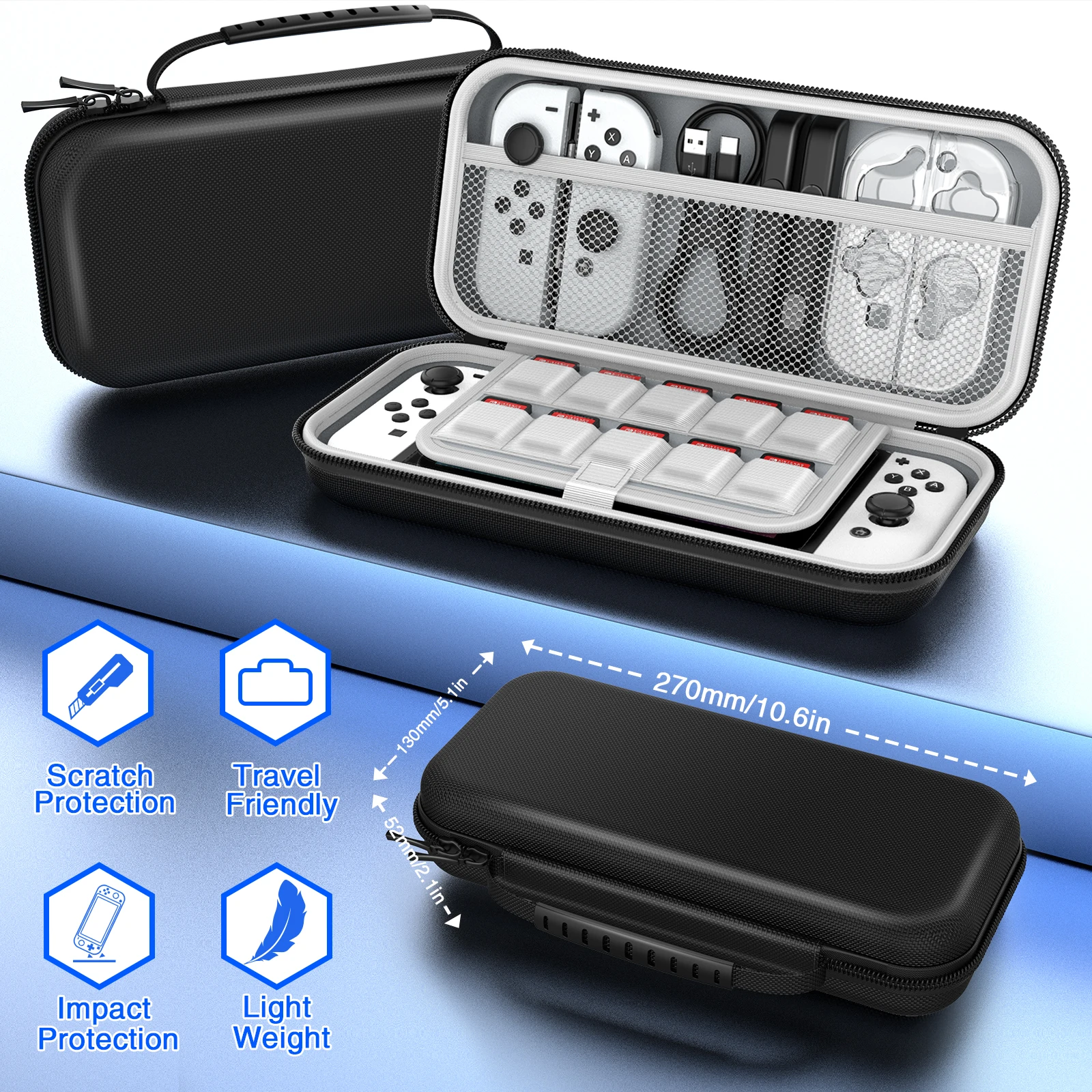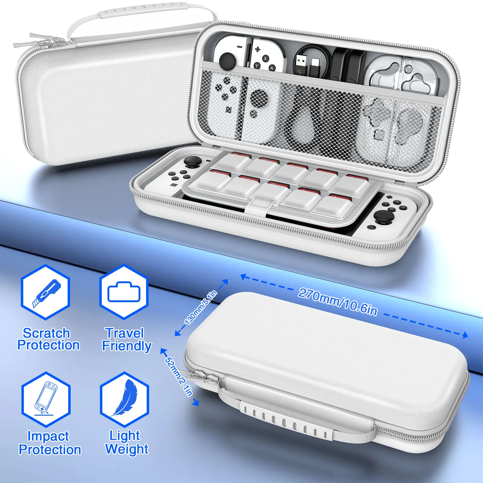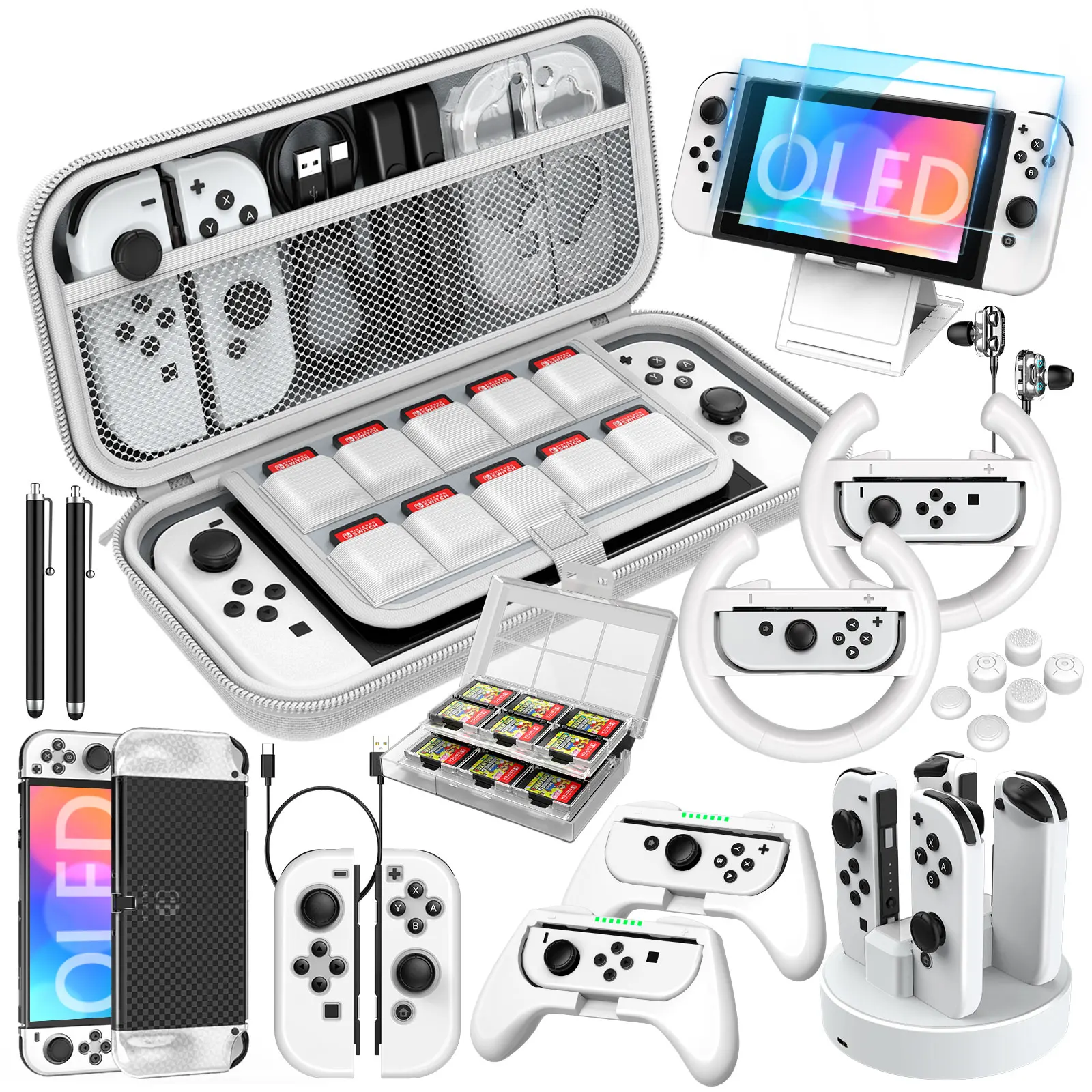 Nintendo 휴대용 휴대용 바이핑 백, 스위치 OLED 27 in 1 선물 가방, 화면 강화 필름 핸들 및 기타 액세서리 포함