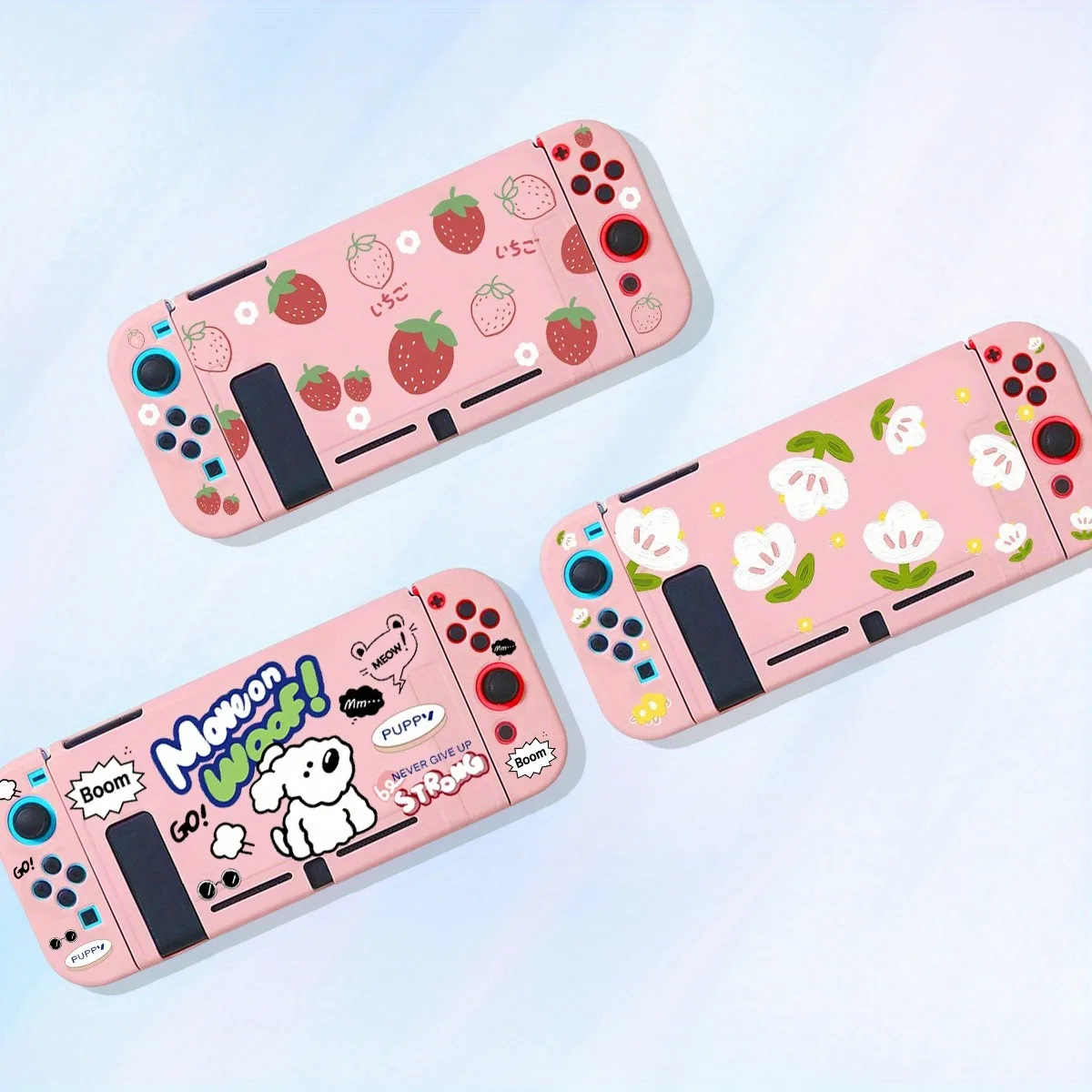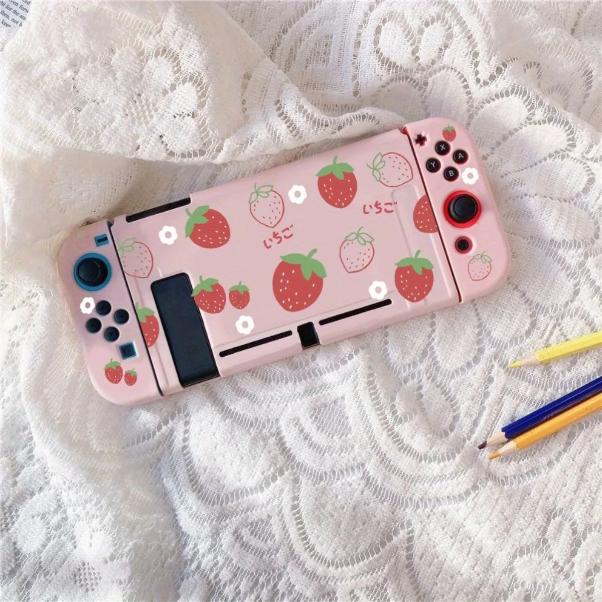 닌텐도 스위치용 딸기 보호 쉘 소프트 TPU 쉘 NS 게임 컨트롤러용 쉘 분할 핑크 보호 케이스