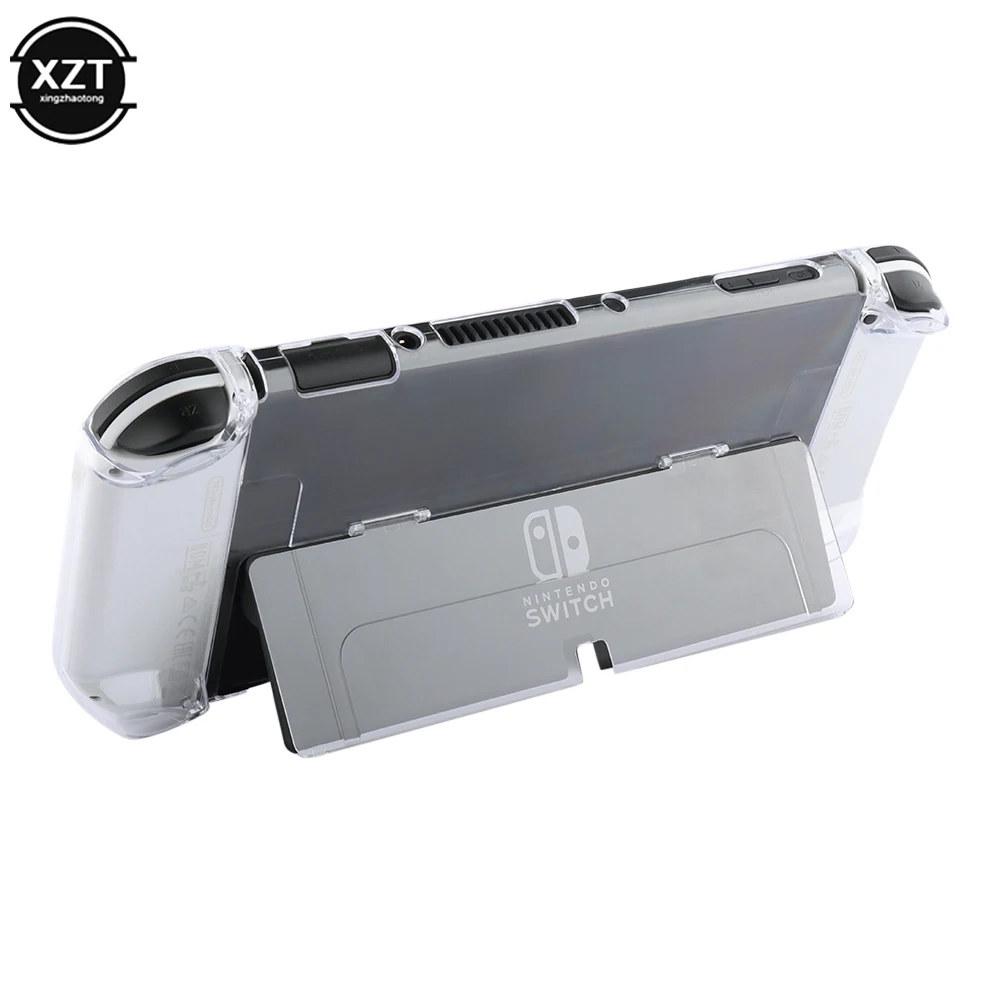 새로운 크리스탈 클리어 콘솔 쉘 커버 실리콘 닌텐도 스위치 OLED 투명 보호 플립 케이스 낙하 방지 충격 방지 가드