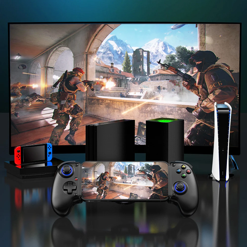 5. 정밀 제어 및 인체 공학적 설계:휴대 전화 게임 패드에는 표준 조이스틱보다 더 정확하게 제어 할 수있는 아날로그 트리거와 홀 효과 조이스틱이 있습니다. 인체공학을 염두에 두고 설계된 D-패드와 ABXY 버튼은 전도성 실리콘을 사용하여 민감하게 누르고 빠르게 움직이며 편안함을 향상시키고 게임 경험의 도약을 제공합니다. 왼쪽 및 오른쪽 스트레칭 디자인은 휴대가 가능하지만 대형 화면 휴대폰 및 태블릿과 호환되므로 안정성을 보장합니다. 핸들의 고밀도 질감 미끄럼 방지 디자인은 땀을 방지하여 143-260 mm의 스트레치 범위를 수용하여 간편한 게임 플레이를 제공합니다.