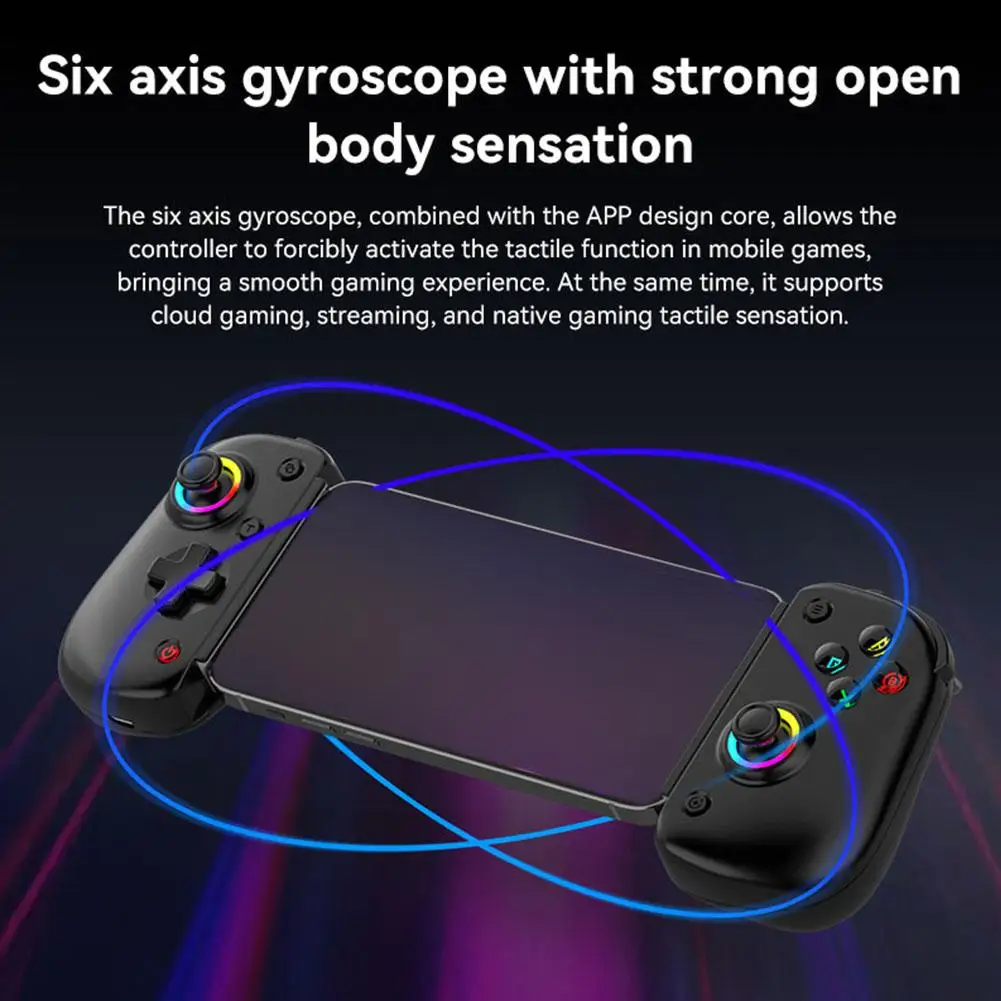APP 디자인 코어와 결합 된 6 축 자이로 스코프는 컨트롤러가 모바일 게임에서 체성 감각 기능을 강제로 켜서 원활한 게임 경험을 제공합니다. 또한 클라우드 게임, 스트리밍 및 네이티브 게임 체성 감각을 지원합니다.