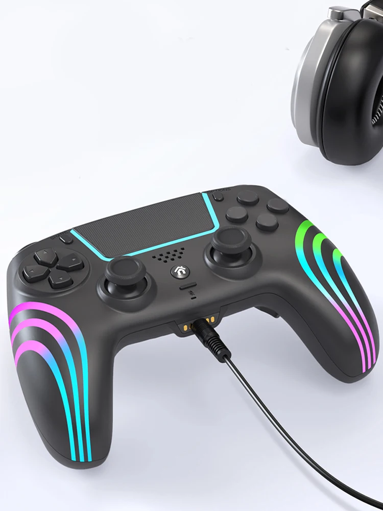 블루투스 호환 무선 컨트롤러 PS4 컨트롤러/Windows PC와 호환되는 이중 진동 무선 게임패드 게임 콘솔 컨트롤러 특징: 1. 고감도 터치 패드:무선 컨트롤러의 고감도 터치 패드로 매끄럽고 지연없는 게임 플레이를 경험하여 모든 움직임에서 정밀 제어를 보장합니다. 2.RGB 조명 효과:소프트웨어가 필요하지 않으면이 원격 게임 패드의 바로 가기 키를 사용하여 RGB 조명 효과를 쉽게 조정하여 세 가지 조명 모드로 매력적인 게임 분위기를 조성하십시오. 3. 정밀 홀 조이스틱:이 무선 게임 패드의 360 ° 고정밀 홀 조이스틱은 편안한 그립감과 부드러운 부드러운 컨트롤을 제공하여 플레이어가 조준과 같은 도전적인 게임 내 동작을 쉽게 실행할 수 있도록 도와줍니다. 4. 배터리 수명 연장:1000mAh 충전식 배터리로 자주 충전하는 것에 작별 인사, 이 게임 콘솔 컨트롤러는 최대 20 시간의 연속 재생 시간을 제공하고 전력 손실의 불안을 제거합니다. 5. 몰입 형 트리거 및 다양성:빠른 응답과 원활한 작동을 위해 백만 회 이상의 프레스를 위해 설계된 게임 컨트롤러의 홀 선형 트리거로 실제 스로틀의 스릴을 느껴보십시오. 또한 PS4/PC (Win7/8/10) 와 호환, 3.5mm 오디오 잭을 통해 실시간 통신을 통해 멀티 플랫폼 게임을 즐길 수 있습니다. 맞춤형 게임 경험을 위한 맞춤형 듀얼 백 버튼.