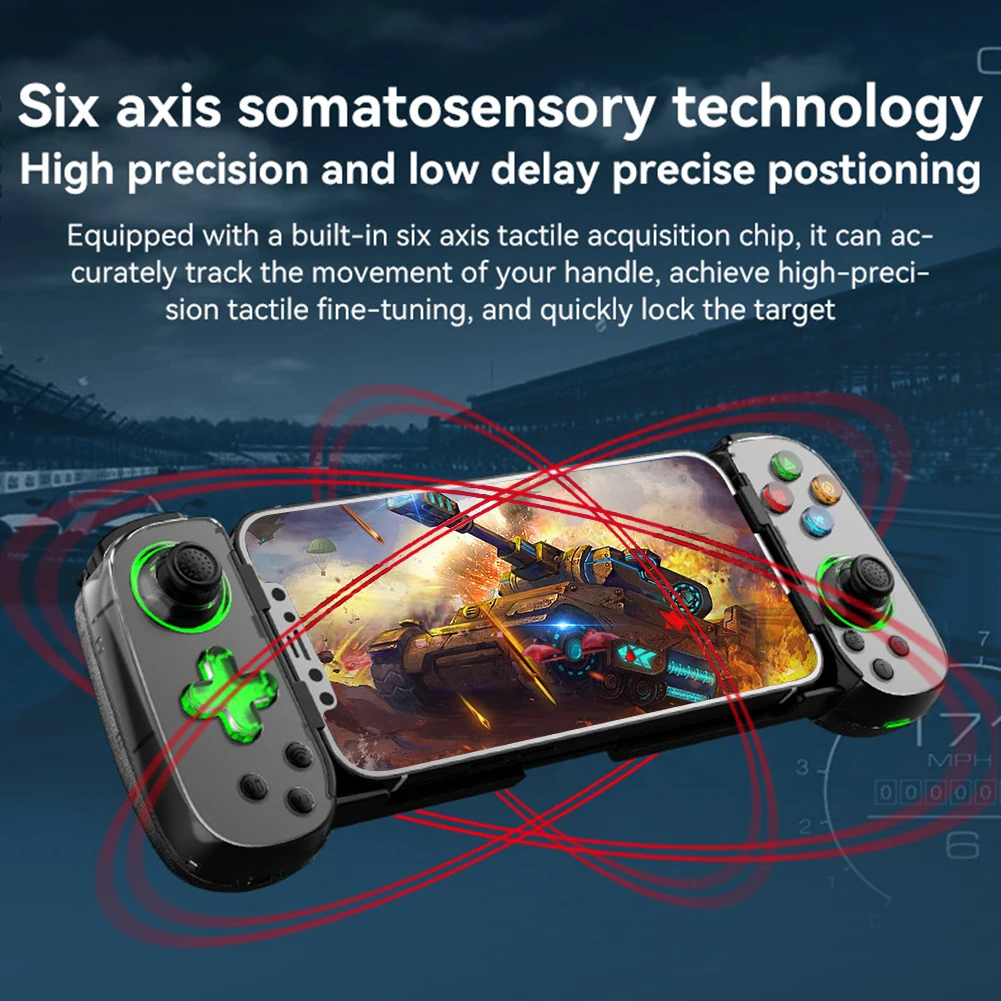5. 0.8mm 선형 트리거와 빠른 트리거 응답:0.8mm 트리거 이동 거리로 번개처럼 빠른 게임 경험을 준비하십시오. 경쟁 게임이든 다른 게임이든 이러한 트리거는 즉각적인 응답 시간을 제공하므로 쉽게 빠르게 조정할 수 있습니다. 인체 공학적 디자인은 편안한 버튼 배치를 제공하며 확장 가능한 디자인은 대형 스마트 폰과의 호환성을 보장하여 강렬한 게임 세션에서 안정성을 보장합니다. 127-180 mm의 스트레치 범위로 매끄럽고 정밀한 게임 경험을 즐기십시오.