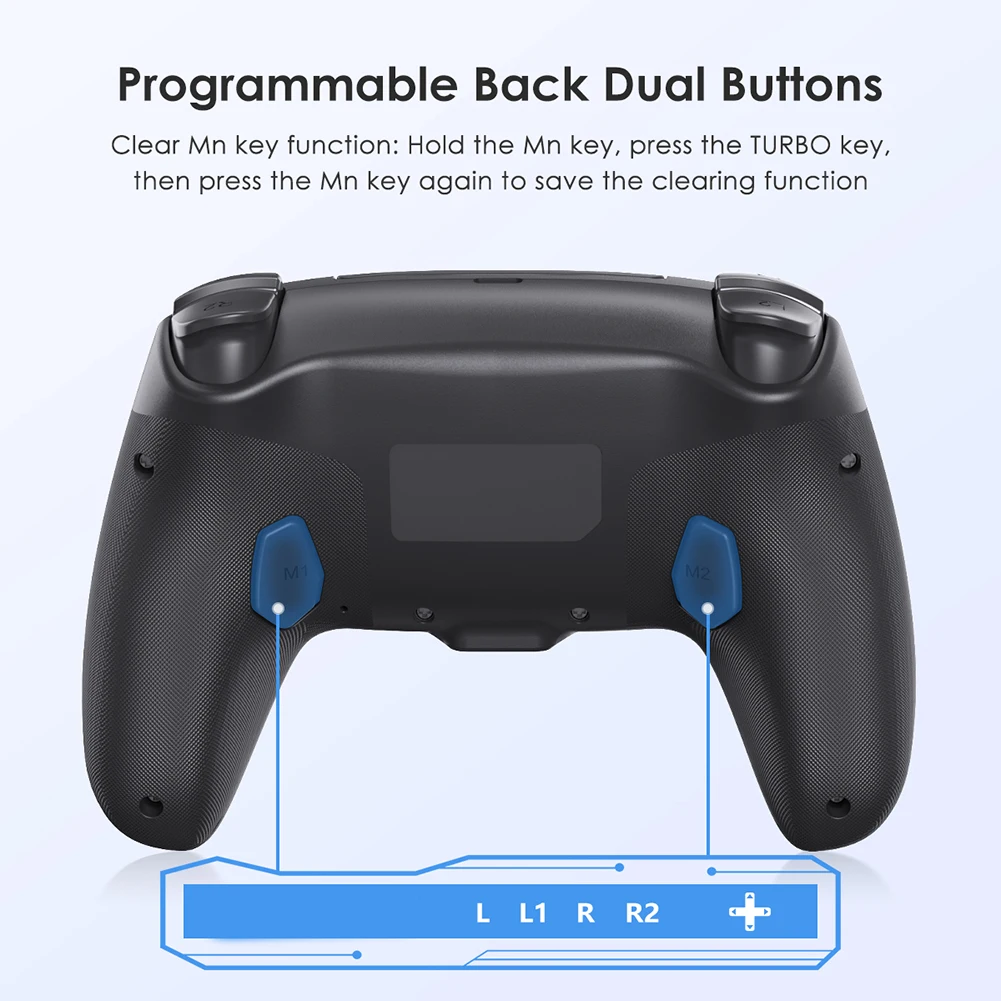 3. 정밀 홀 조이스틱:이 무선 게임 패드의 360 ° 고정밀 홀 조이스틱은 편안한 그립감과 부드러운 부드러운 컨트롤을 제공하여 플레이어가 조준과 같은 도전적인 게임 내 동작을 쉽게 실행할 수 있도록 도와줍니다.