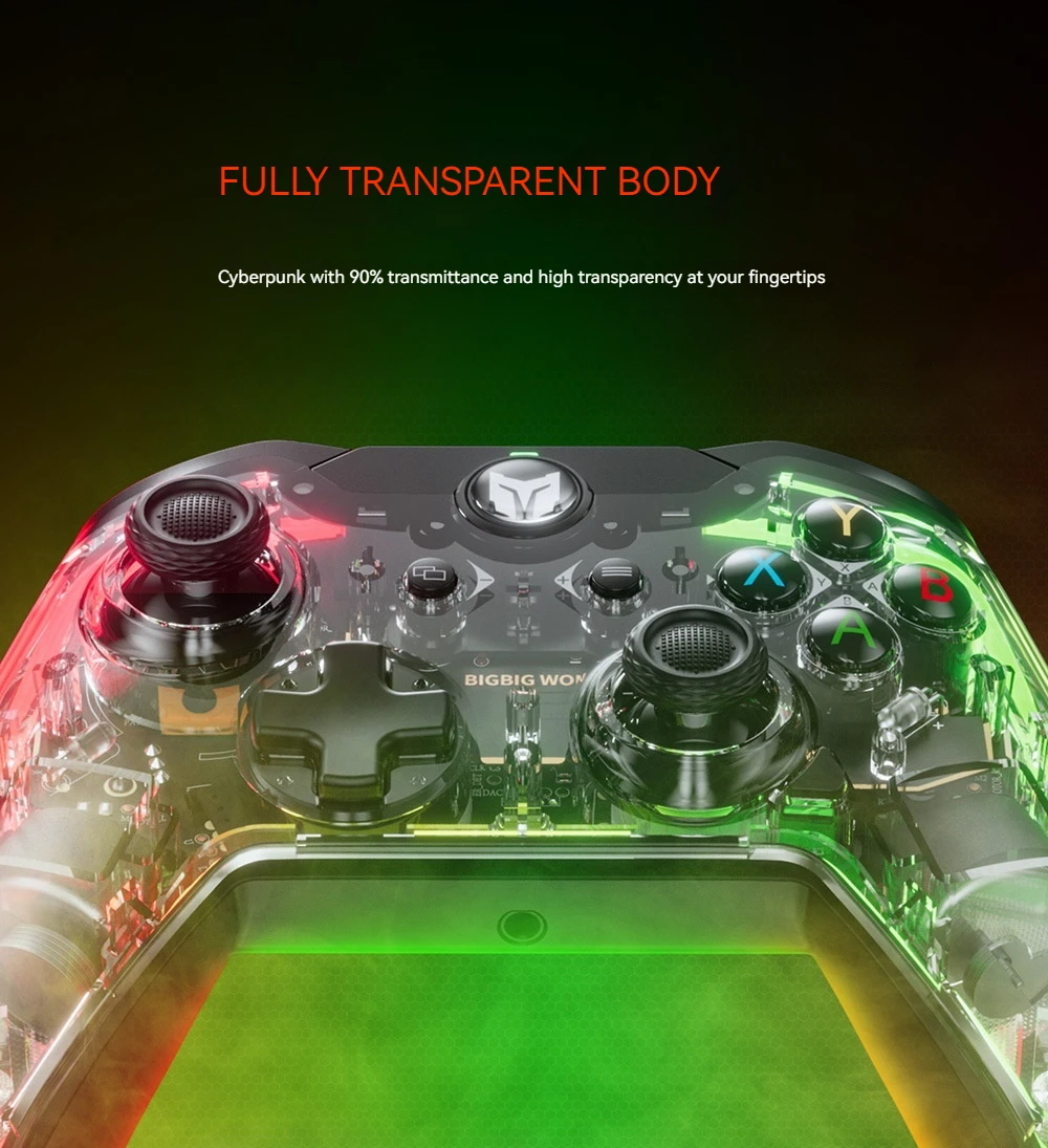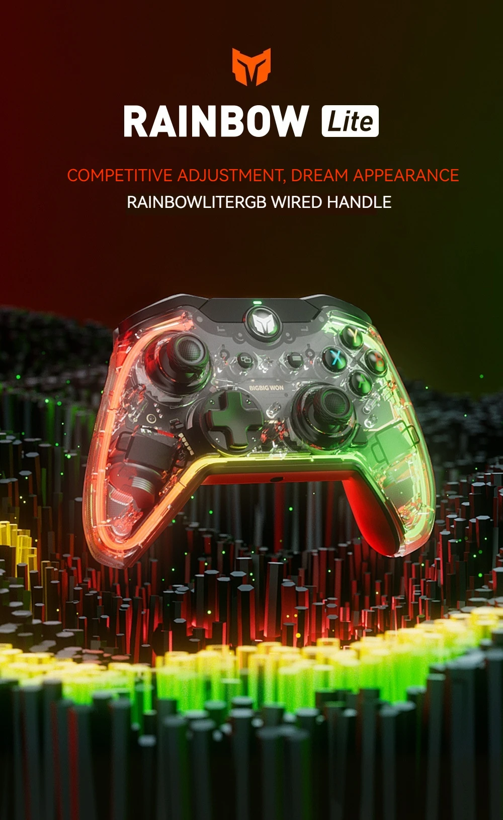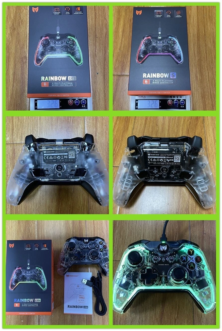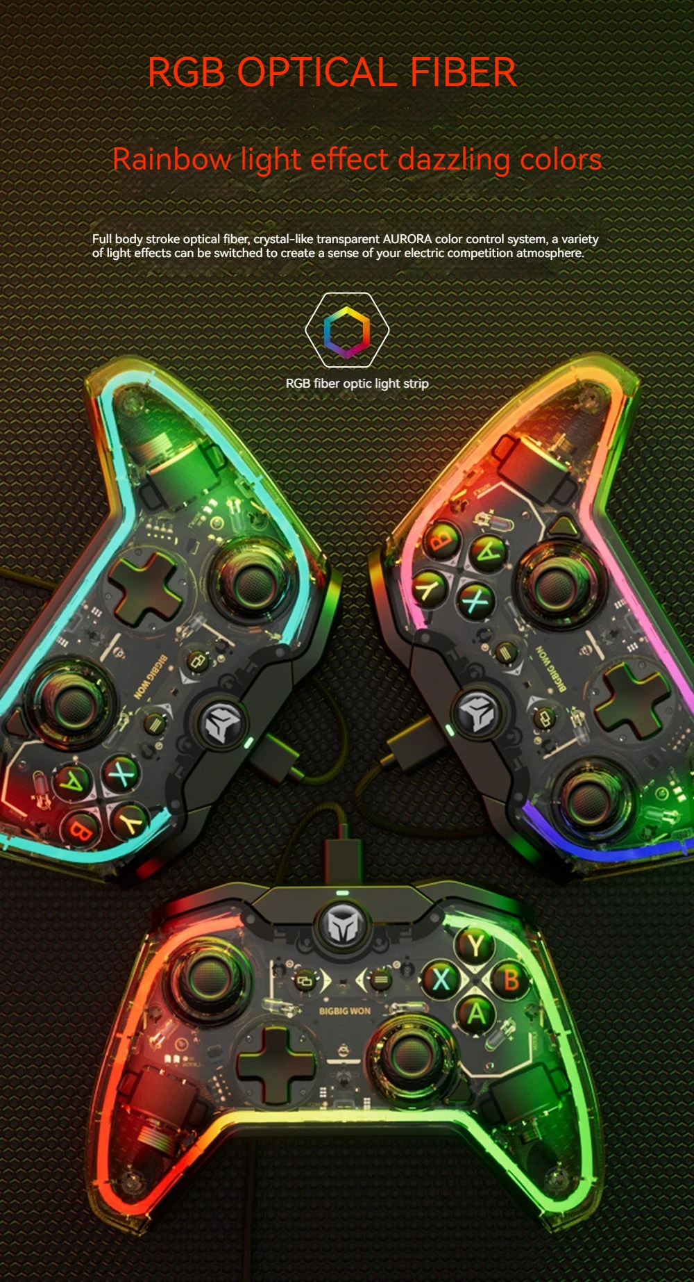 Bigbig Won 레인보우 C1lite 유선 게임 패드 PC 컴퓨터 스위치 핸드 Ps4 RGB 라이트 백 키 투명 바디 E스포