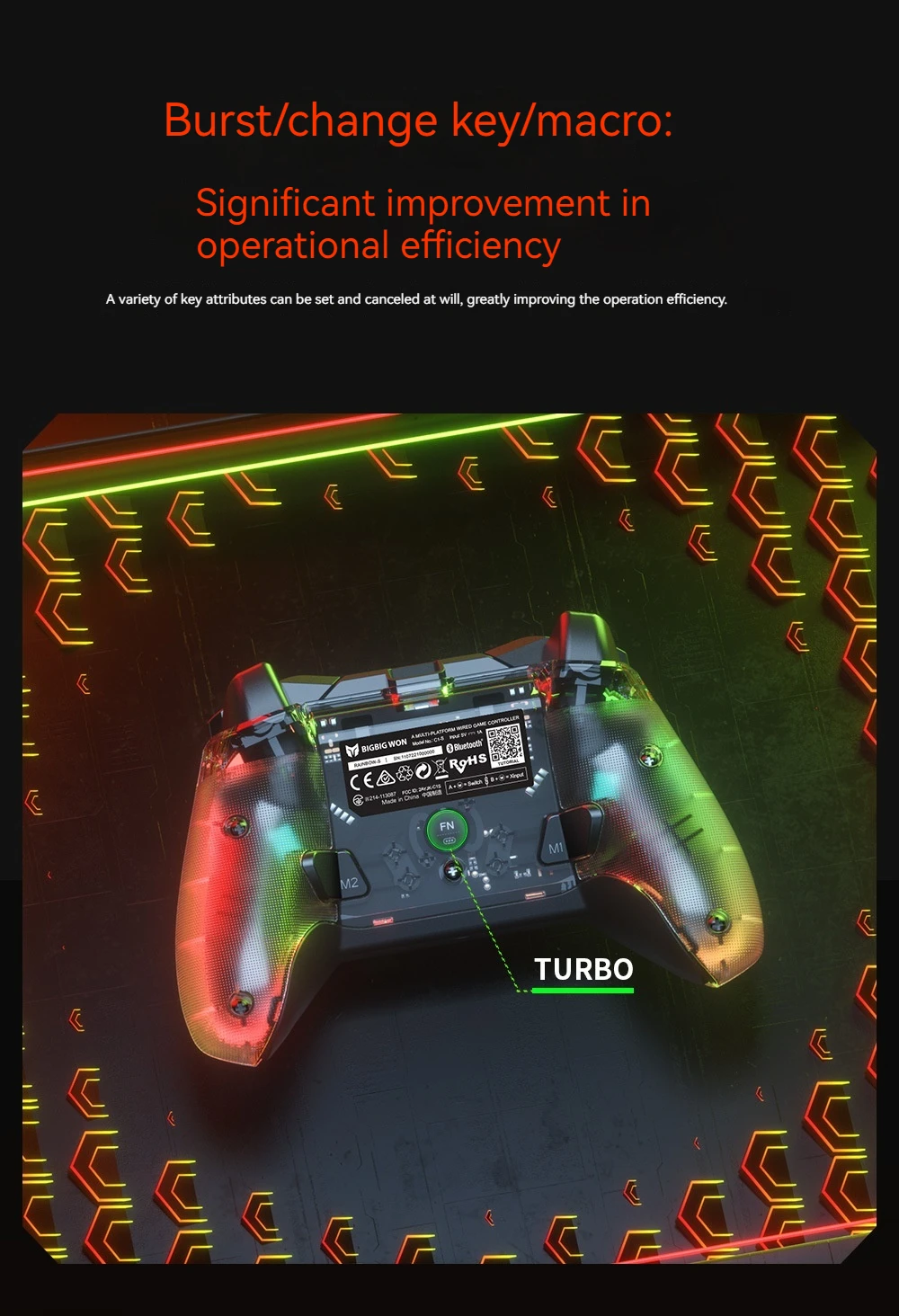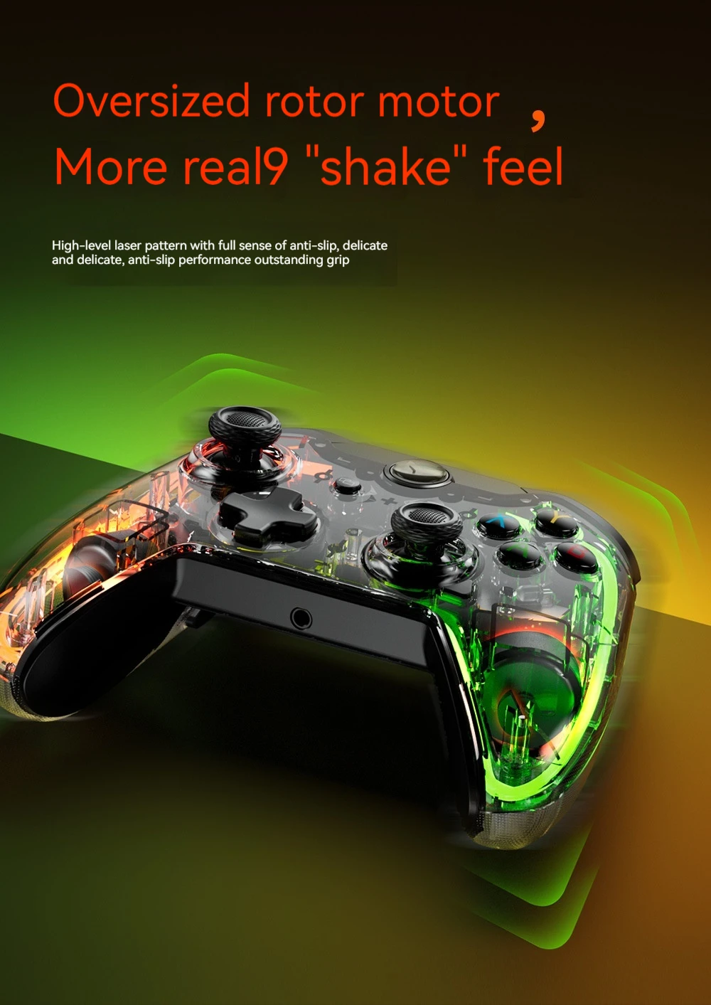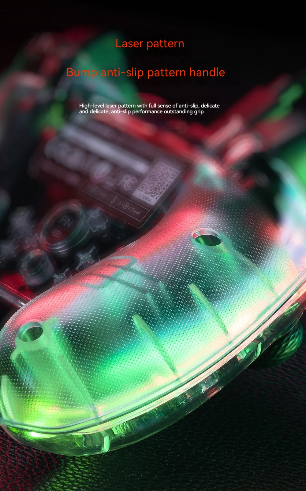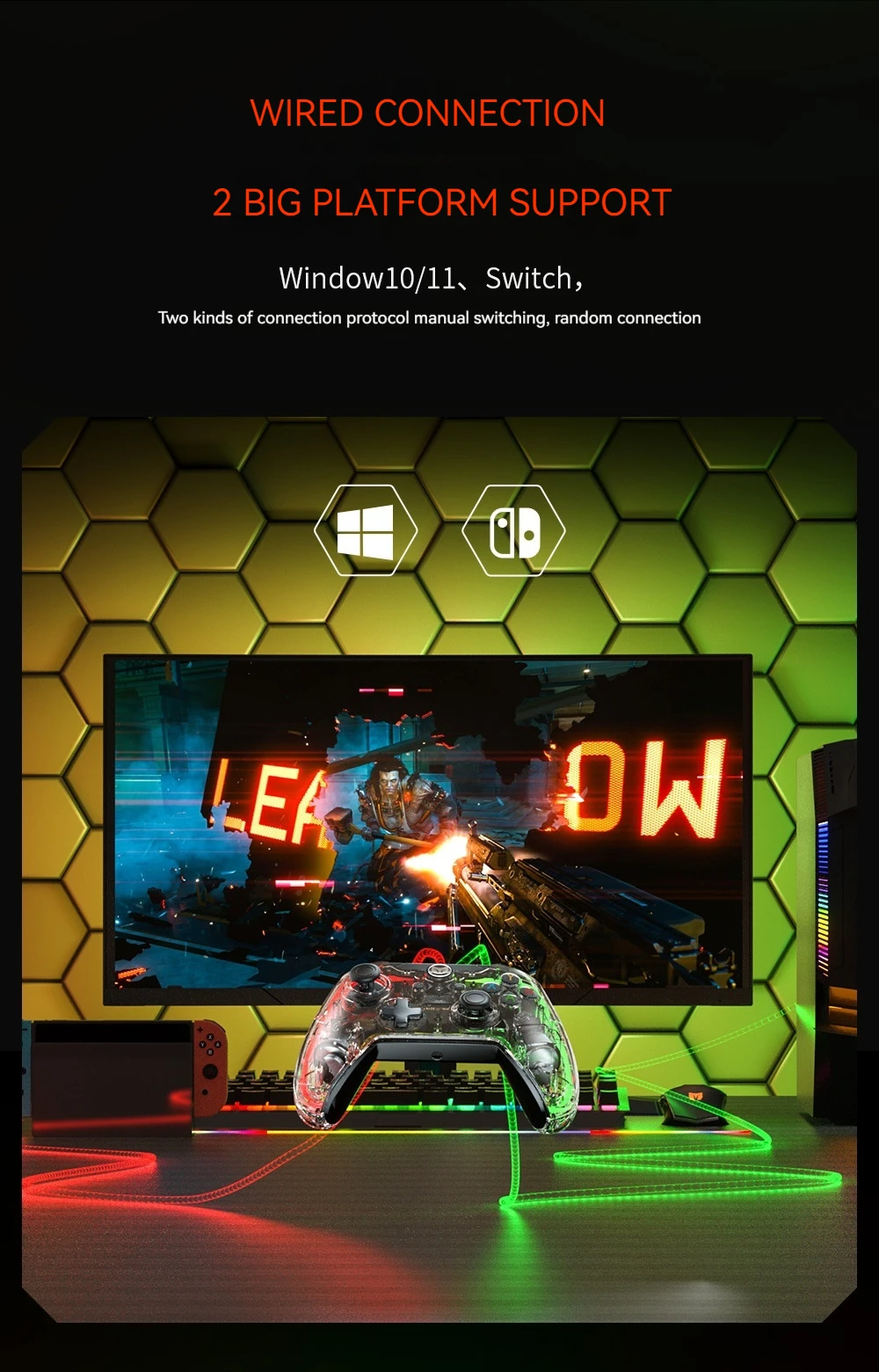 Bigbig Won 레인보우 C1lite 유선 게임 패드 PC 컴퓨터 스위치 핸드 Ps4 RGB 라이트 백 키 투명 바디 E스포