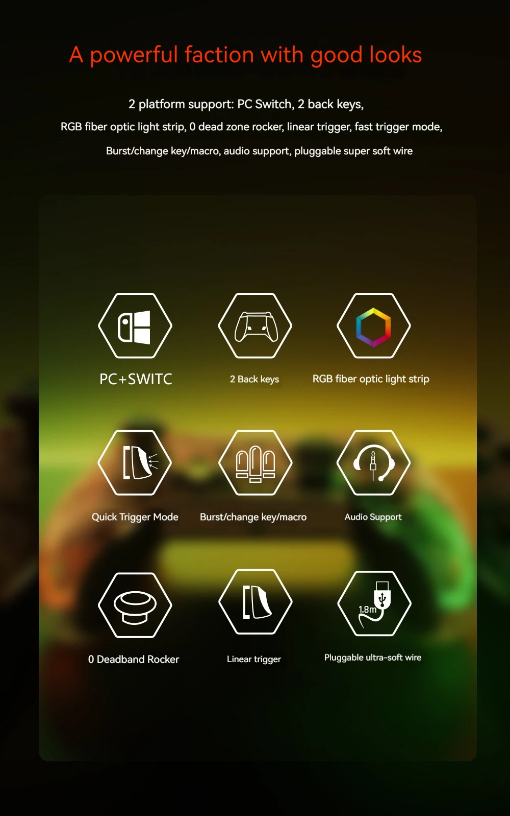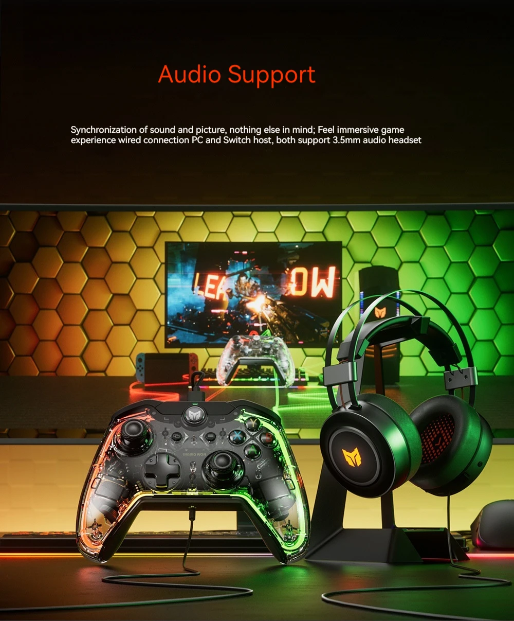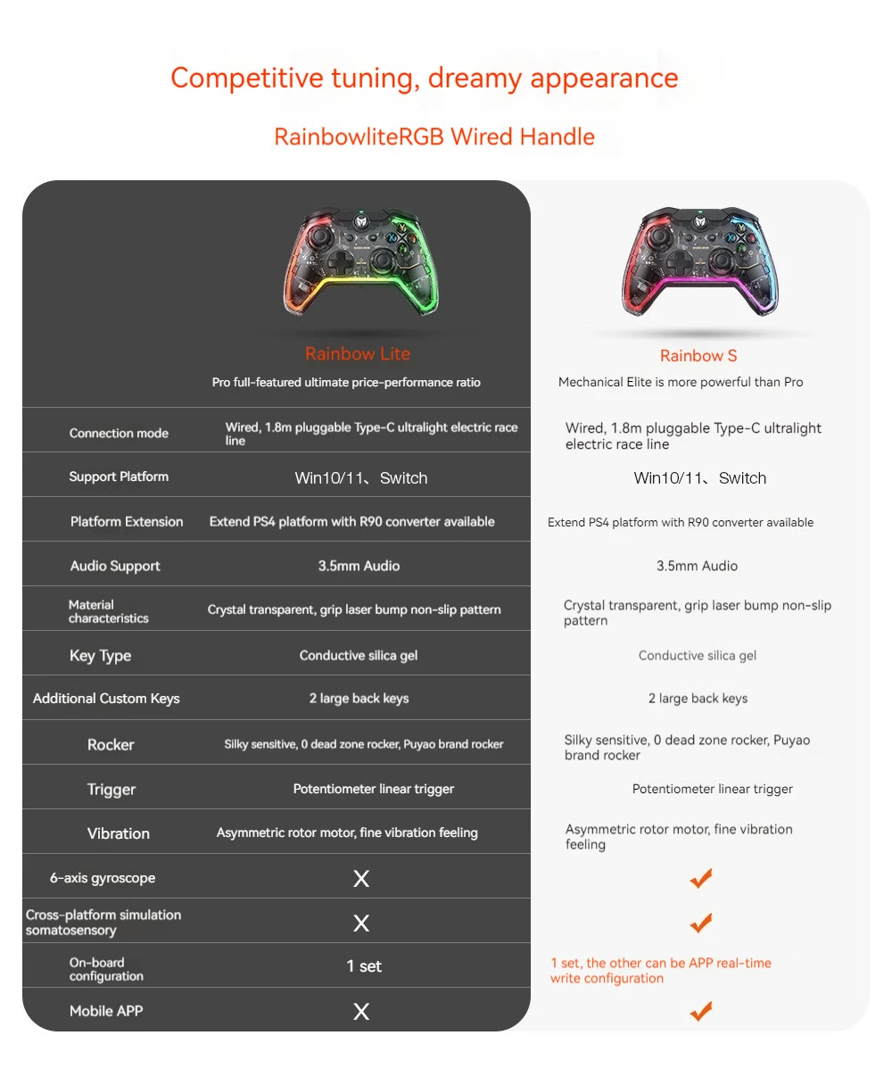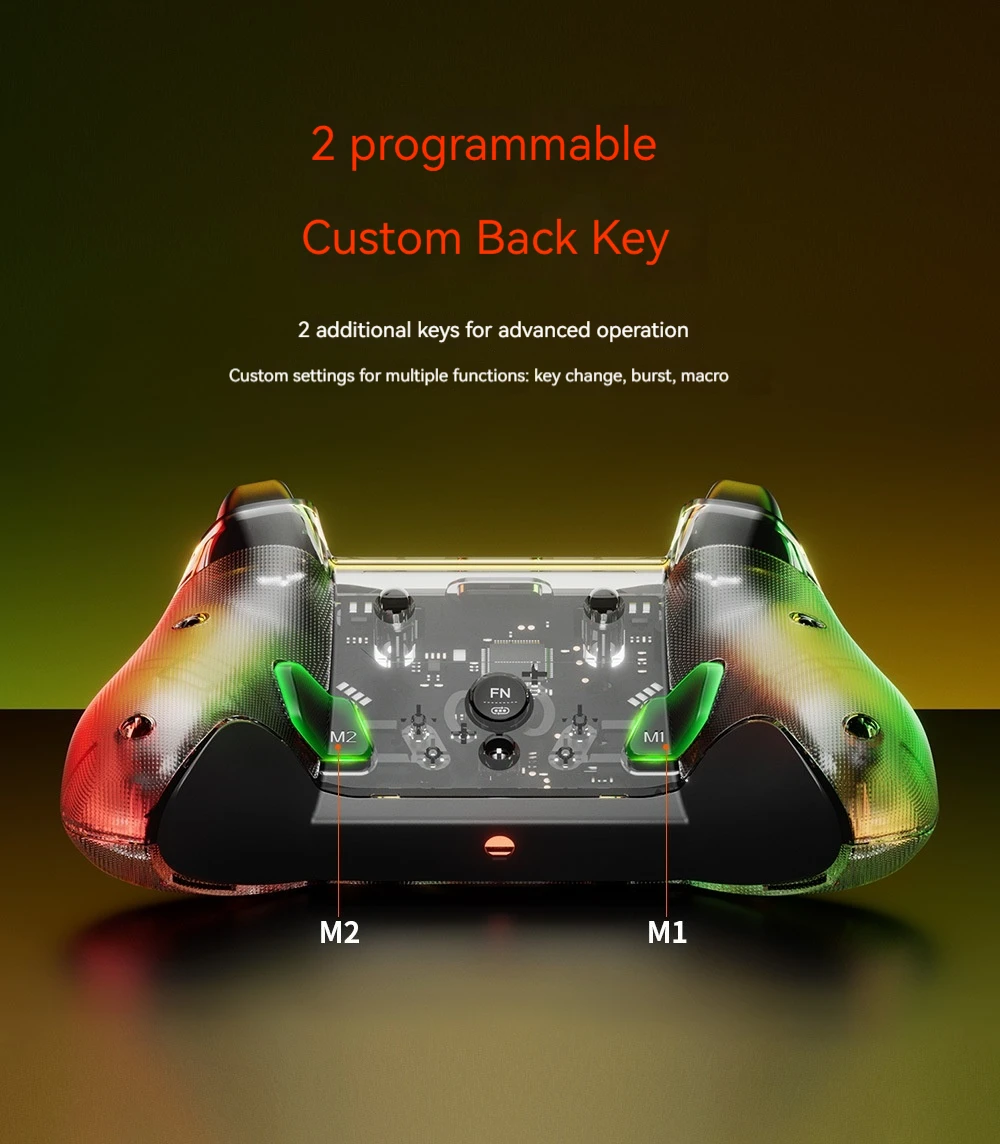 Bigbig Won 레인보우 C1lite 유선 게임 패드 PC 컴퓨터 스위치 핸드 Ps4 RGB 라이트 백 키 투명 바디 E스포
