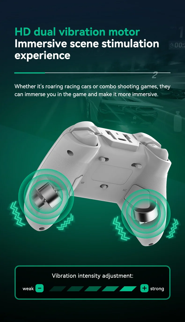 3. 매크로 프로그래밍 백 버튼, 6 축 체성 감각 자이로 스코프, HD 이중 진동 모터 조절 가능, AUTO 1 키 연속 사격.