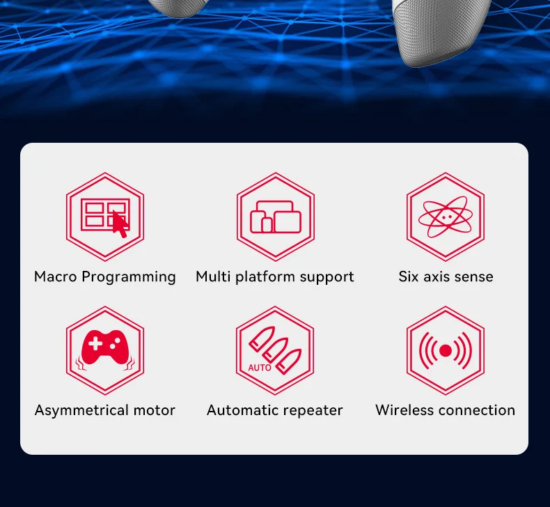 비대칭 모터는 게임에서 강한 영향을 느끼기 위해 컨트롤러의 양쪽에 장착되어 있습니다. 멀티 기어 조정으로 다양한 게임 장면에서 실제 충격 경험 제공