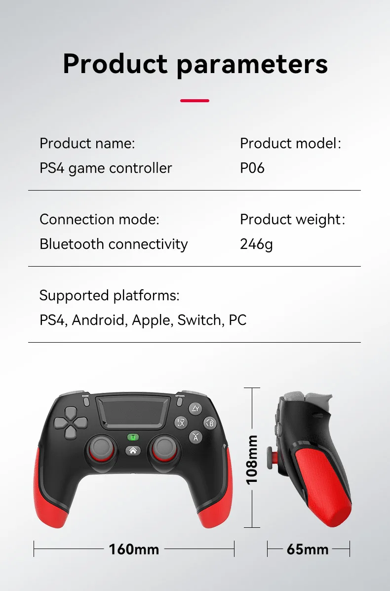 이 게임 컨트롤러는 매크로 프로그래밍, 6 축 느낌, 비대칭 모터, 아날로그 리피터, 선형 트리거, 긴 내구성 등과 같은 매우 강력한 기능을 가지고 있습니다. PS4 에서 터치 패드를 사용할 수 있습니다