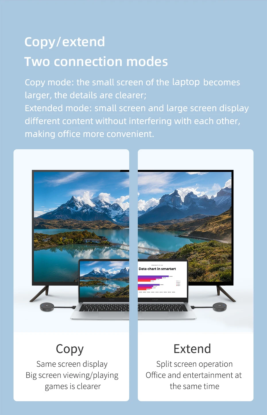 【높은 호환성】HDMI 인터페이스는 호환성이 높으며 다른 인터페이스로 변환 할 수 있습니다. HDMI 인터페이스가있는 장치는 직접 사용할 수 있으며 HDMI 인터페이스가없는 장치는 HDMI 변환기와 함께 사용할 수 있습니다. 무선으로 진정한 1080p 고화질 3D 비디오 및 디지털 오디오를 TV 또는 프로젝터로 스트리밍합니다. 노트북, PC, MacBook, iPad Pro, A/V 수신기, 게임 콘솔, PS4/5, Xbox, Nintendo Switch, 케이블/위성에서 영화 및 TV 프로그램을 시청하십시오.
