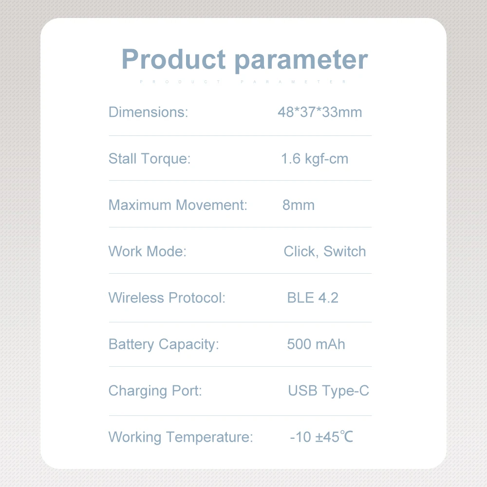 장거리에서 집 전체의 모든 버튼과 스위치를 기계적으로 작동 할 수 있습니다. 음성 및 앱을 사용하여 모든 기능을 켜고 끌 수 있습니다. 커피 머신, 전등 스위치 및 "켜기/끄기" 버튼이있는 모든 것에 올려 놓으십시오. 이것은 완벽한 가정 보조원입니다.