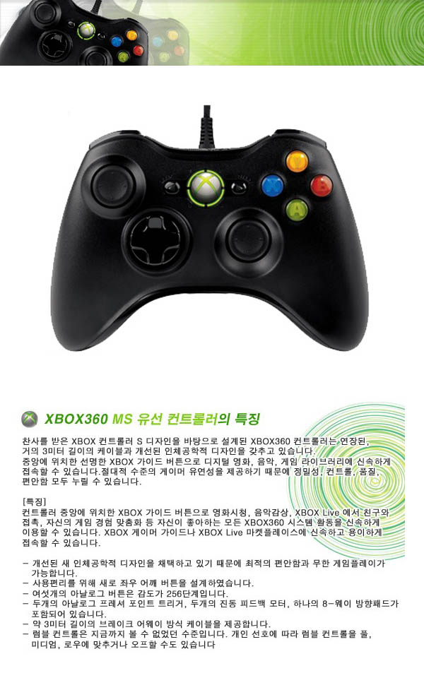 MS 정품 유선 컨트롤러 유선 패드(XBOX360/중고)