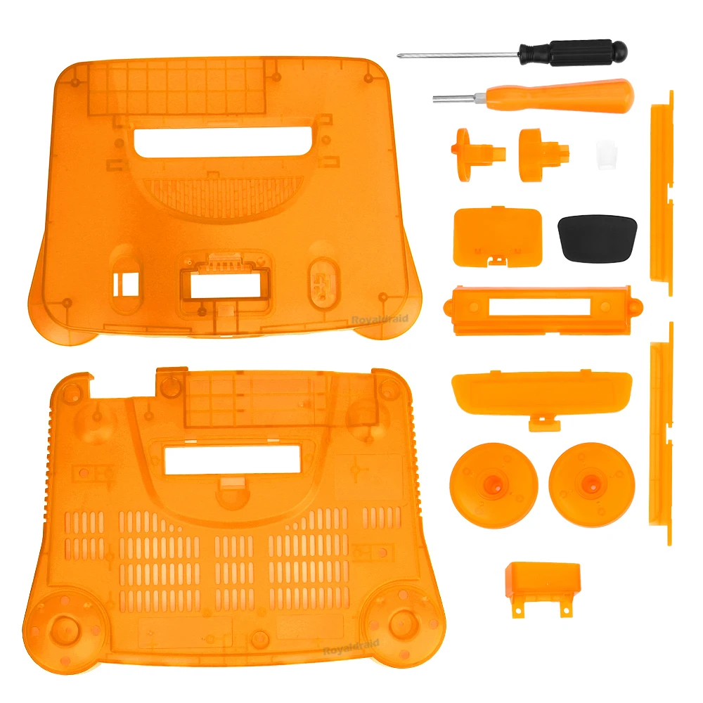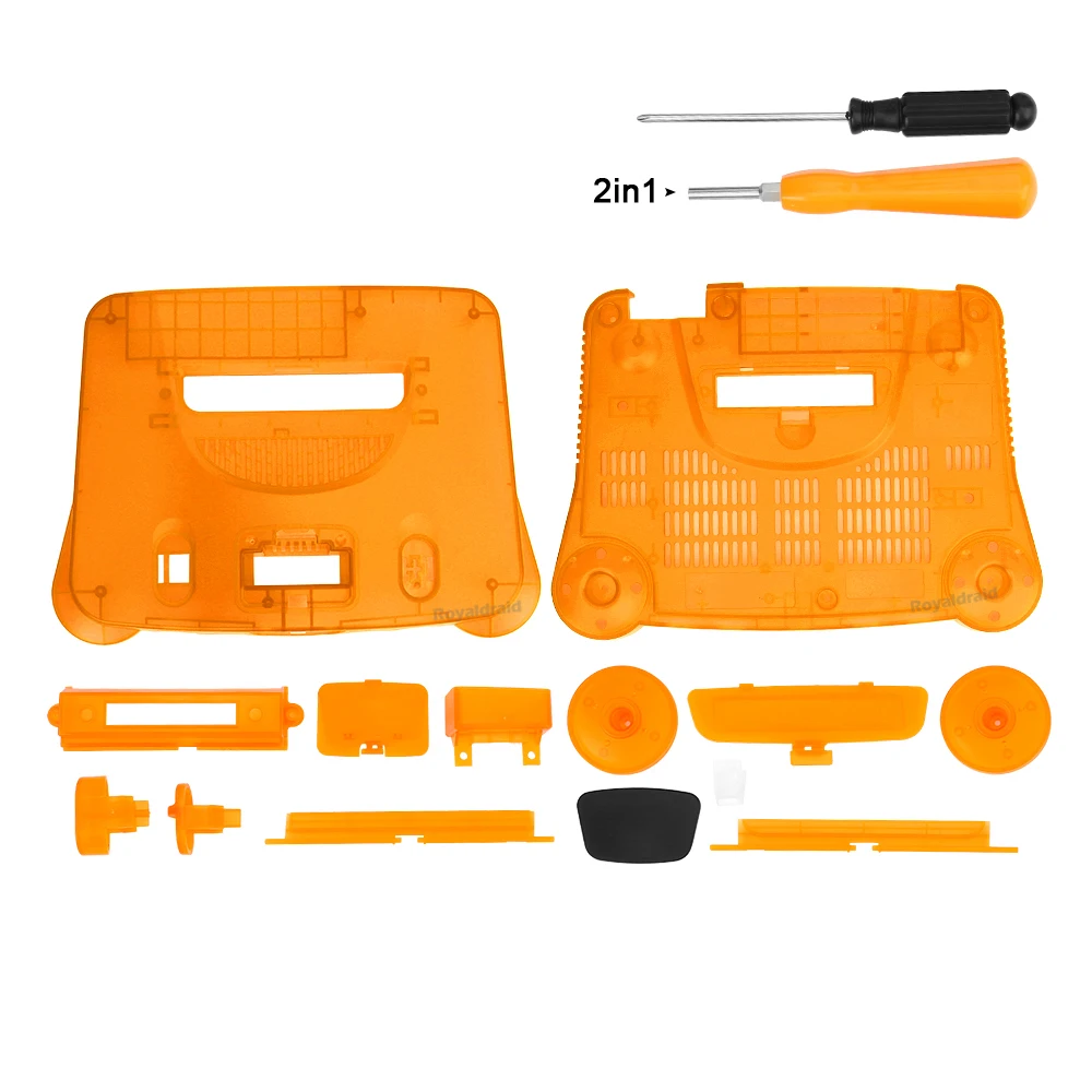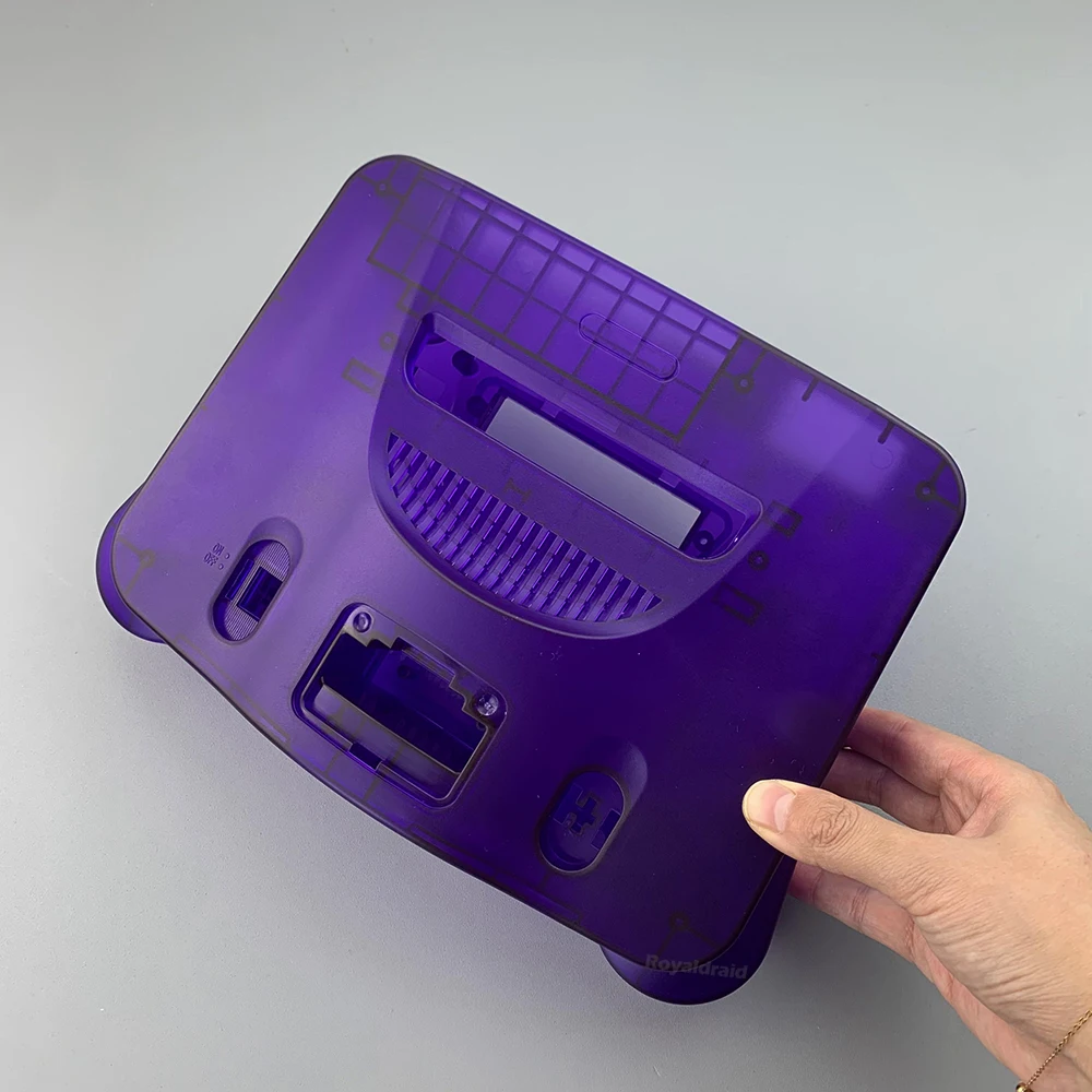 Nintend N64 레트로 비디오 게임 액세서리를위한 N64 모든 지역에 대한 새로운 반투명 오렌지 퍼플 교체 하우징 쉘 케이스