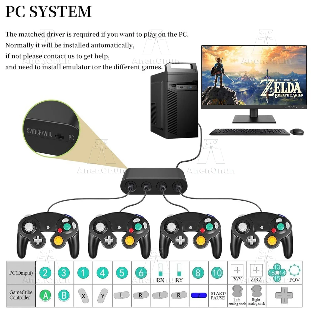 【4 명의 플레이어 지원】-게임 큐브 컨트롤러 용 4 개의 ngc 입력 포트가 제공됩니다. 친구들과 동시에 놀 수 있습니다. 대부분 최대 4 개의 ngc 컨트롤러 연결을 지원합니다.