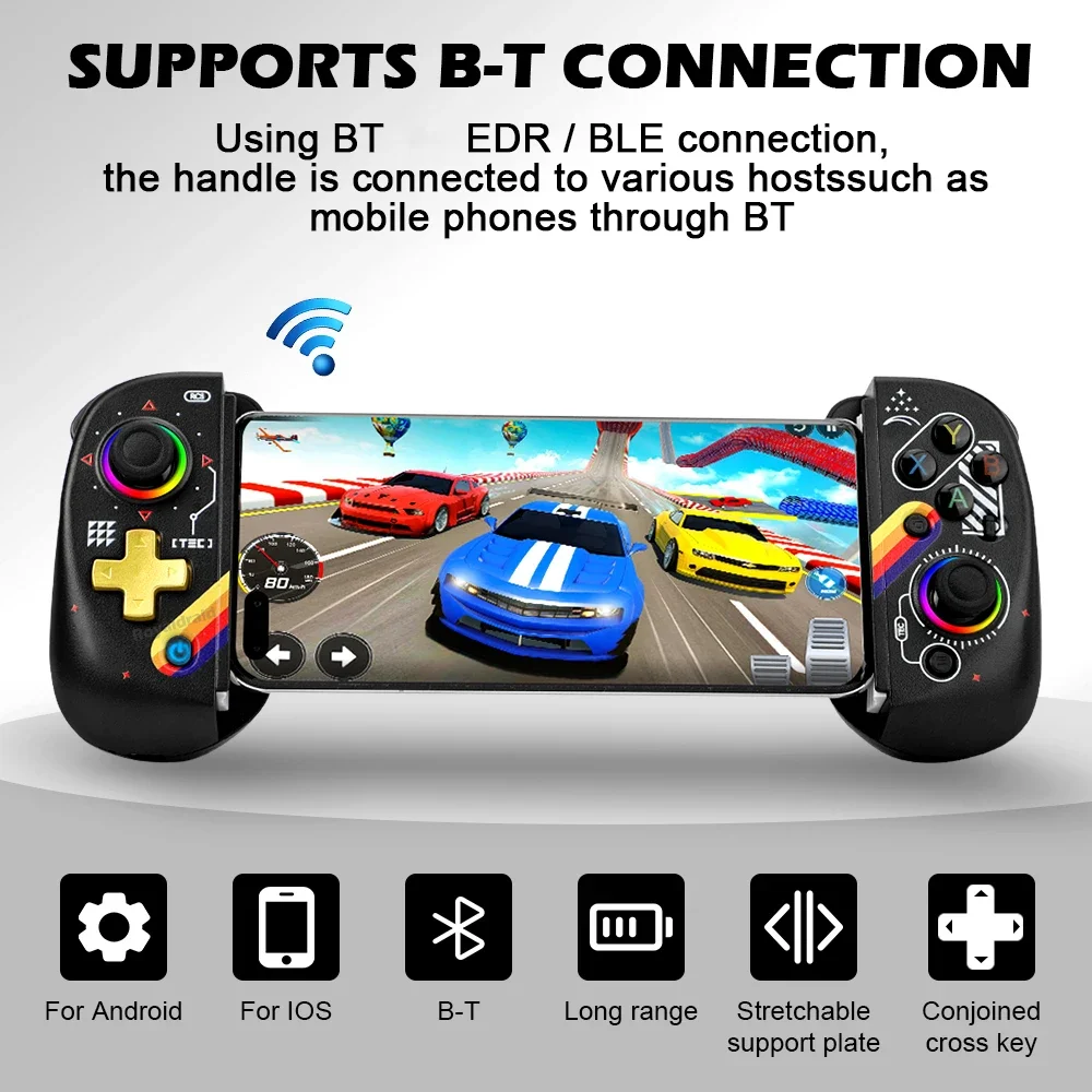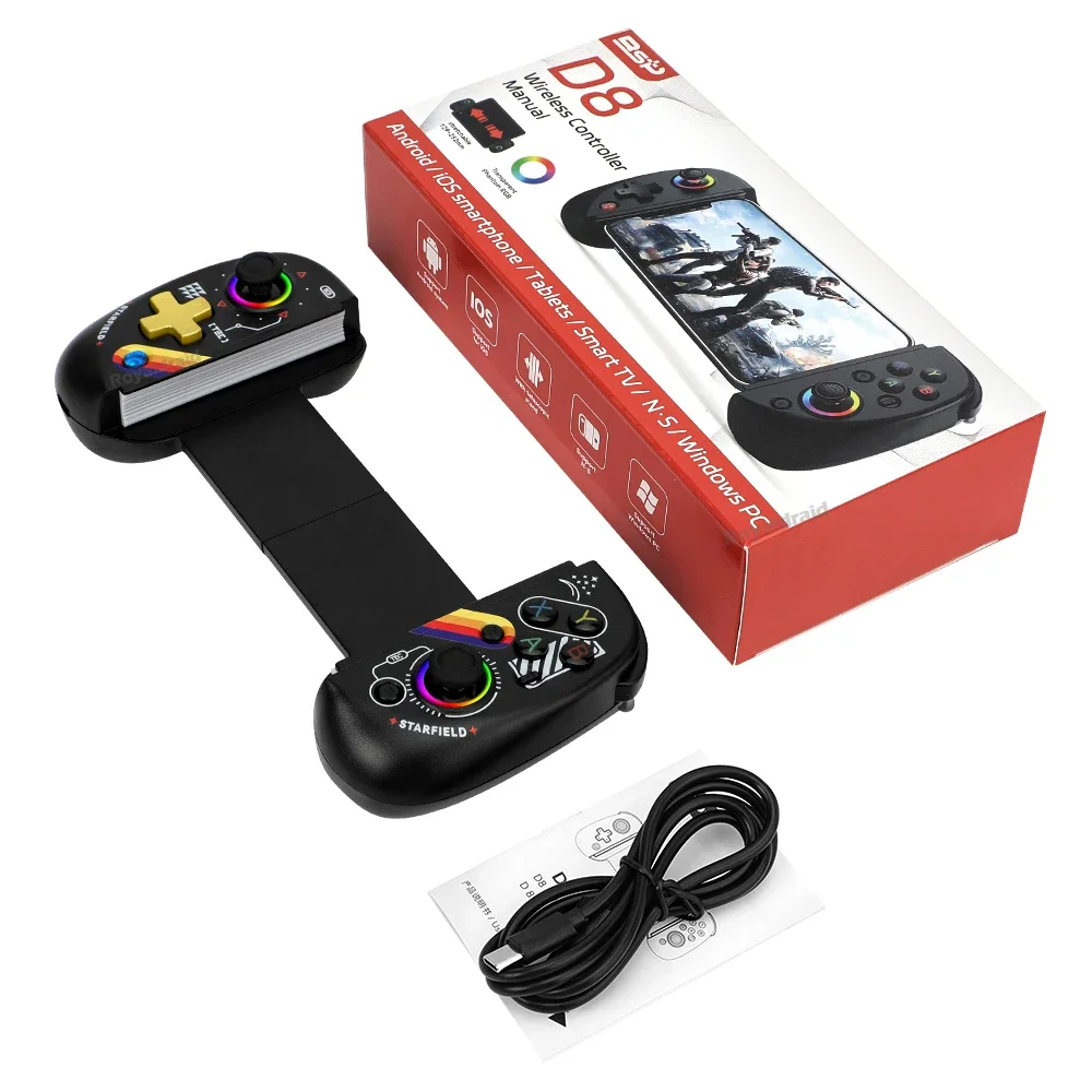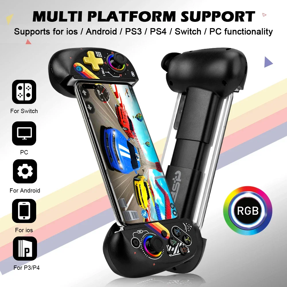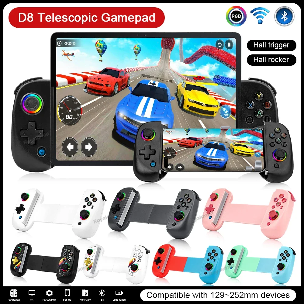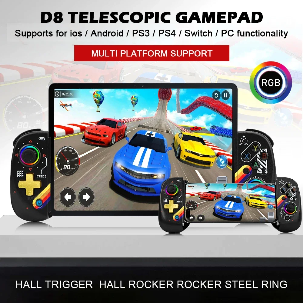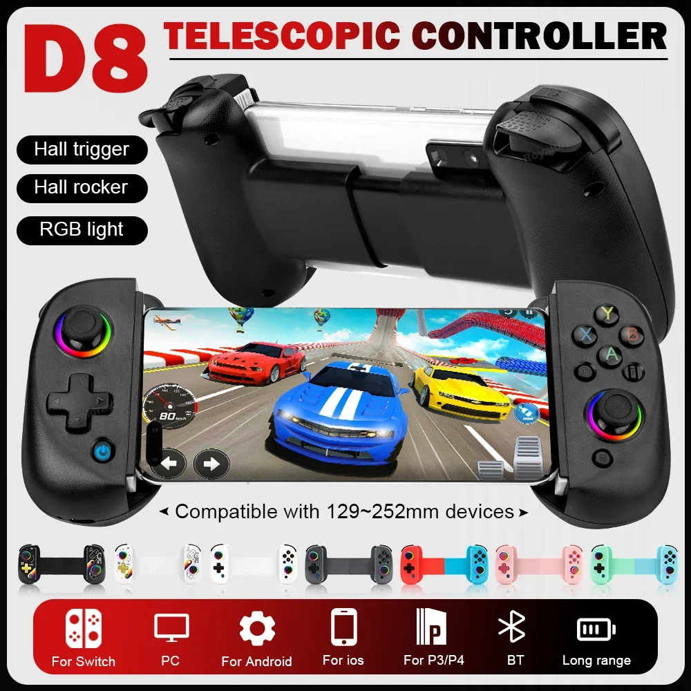 스위치 게임용 NEW D8 RGB 태블릿 컨트롤러 무선 핸들 P3 P4 Android IOS 게임 패드용 블루투스 호환 스트레치 조이스틱