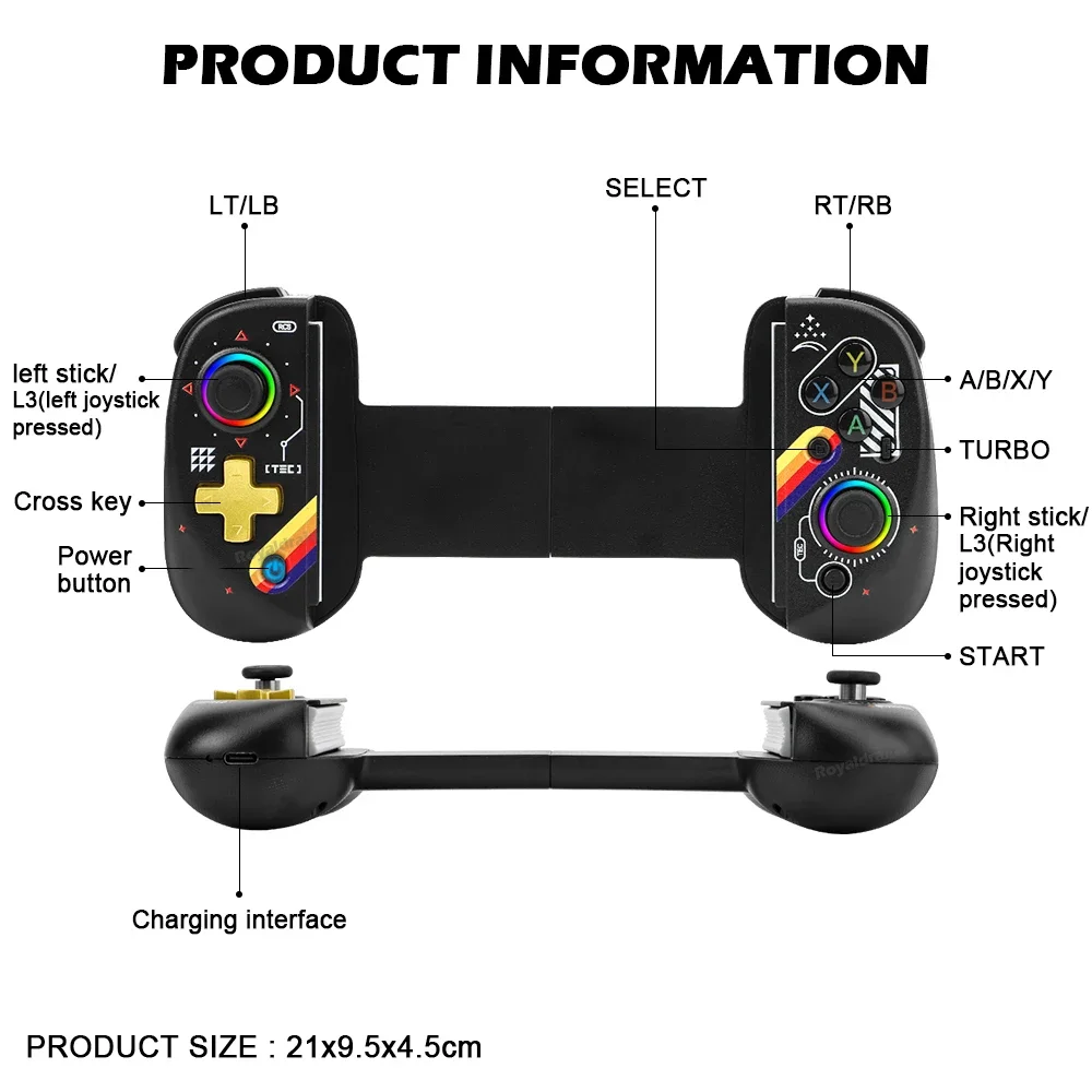 이 무선 컨트롤러는 /PS4/SWITCH 게임 콘솔 용 Bluetooth 호환 연결을 지원하며 정확한 모션 제어를위한 자이로 스코프가 내장되어 있습니다. 이중 진동 모터는 뛰어난 피드백을 제공하여 몰입감을 높이고 민감한 6 축 자이로스코프는 고정밀 방향 제어를 가능하게하여 게임에서 빠르게 반응하고 게임 경험을 향상시킵니다. 아날로그 트리거와 홀 효과 조이스틱을 사용하여 정사이즈 조이스틱에 비해 뛰어난 정확도를 제공합니다. 편안한 통합 D-패드와 신축성있는 디자인으로 인체 공학적으로 설계된이 제품은 휴대 가능하고 대형 화면 스마트 폰과 호환되므로 게임 플레이 중 안정성을 보장합니다. 129 mm에서 252 mm까지 조절 가능한 스트레칭 범위. 손잡이는 고밀도 질감의 미끄럼 방지 디자인을 채택했으며 입자가 고르게 분포되어 땀에 강합니다.