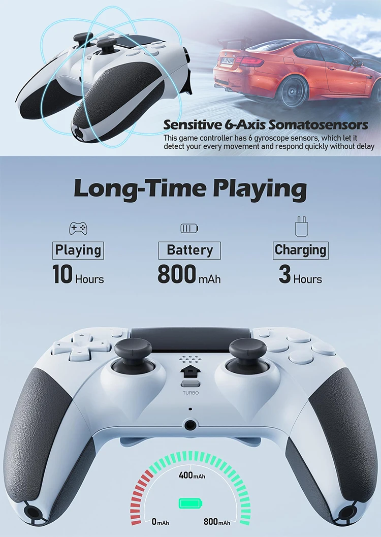 5) 이 핸들은 자이로 스코프 축 기능과 이중 모터 진동 기능을 지원합니다.