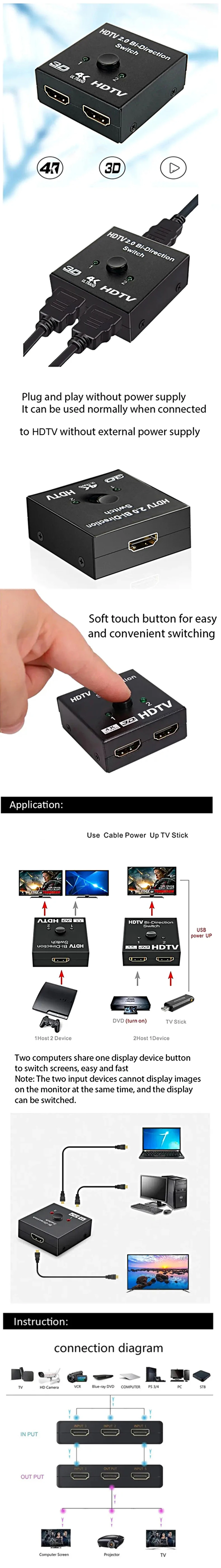 ? 양방향 스위치: 양방향 스위치를 사용하면 두 개의 다른 HDTV 소스간에 전환 할 수있어 두 개의 다른 장치간에 쉽게 전환 할 수 있습니다.