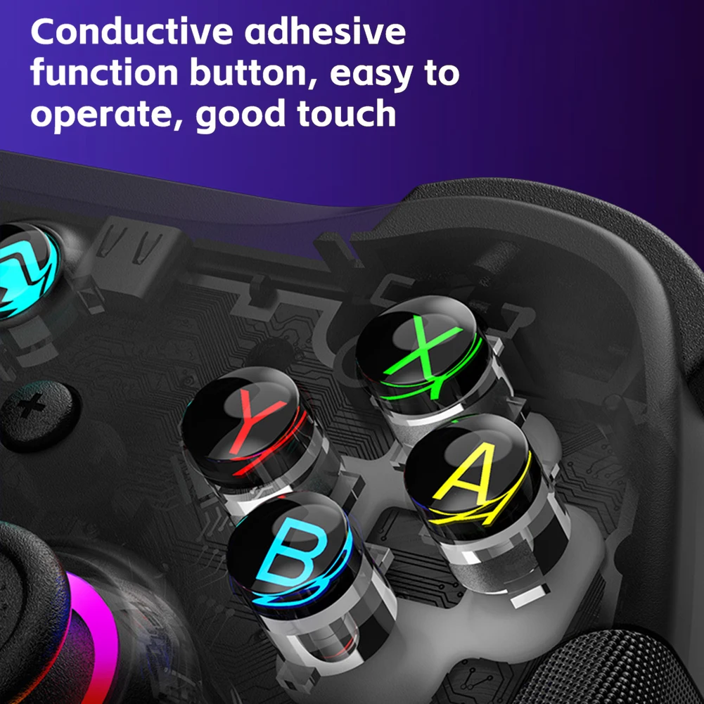 RGB 무선 컨트롤러 이중 진동 게임 컨트롤러 블루투스 호환 6 축 모션 센서 지원 터보 프로그래밍 가능 3D 홀 조이스틱 스위치 스팀 데크 PS4
