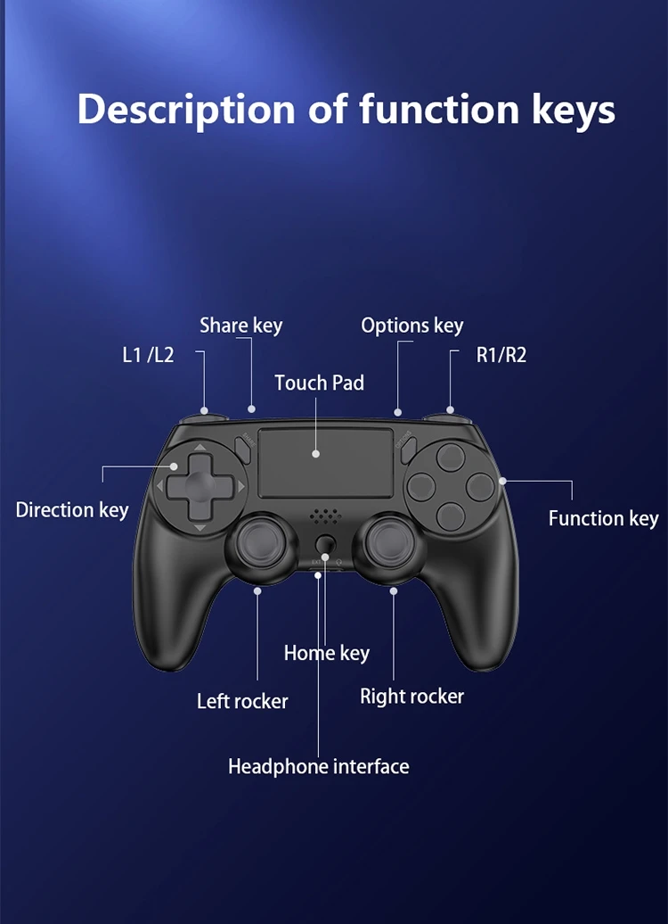 이 무선 게임 컨트롤러는 진동과 함께 Bluetooth 기능을 지원합니다. 원본이 아닙니다. 원본 품질과 동일한 OEM 제품입니다. 이 컨트롤러는 PS4 에만 호환되지 않습니다. 콘솔과 PC에 적합합니다. 컨트롤러 전면에 자연스럽게 직관적 인 터치 패널이있는 매우 민감한 6 축 감지 시스템은 풍부한 게임 경험을 제공합니다.
