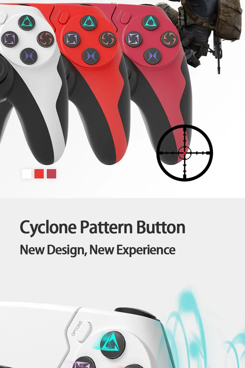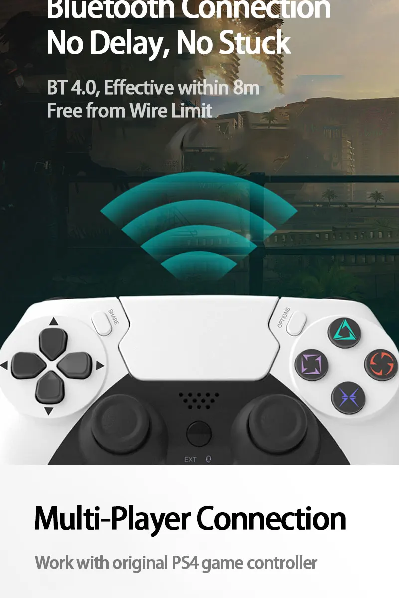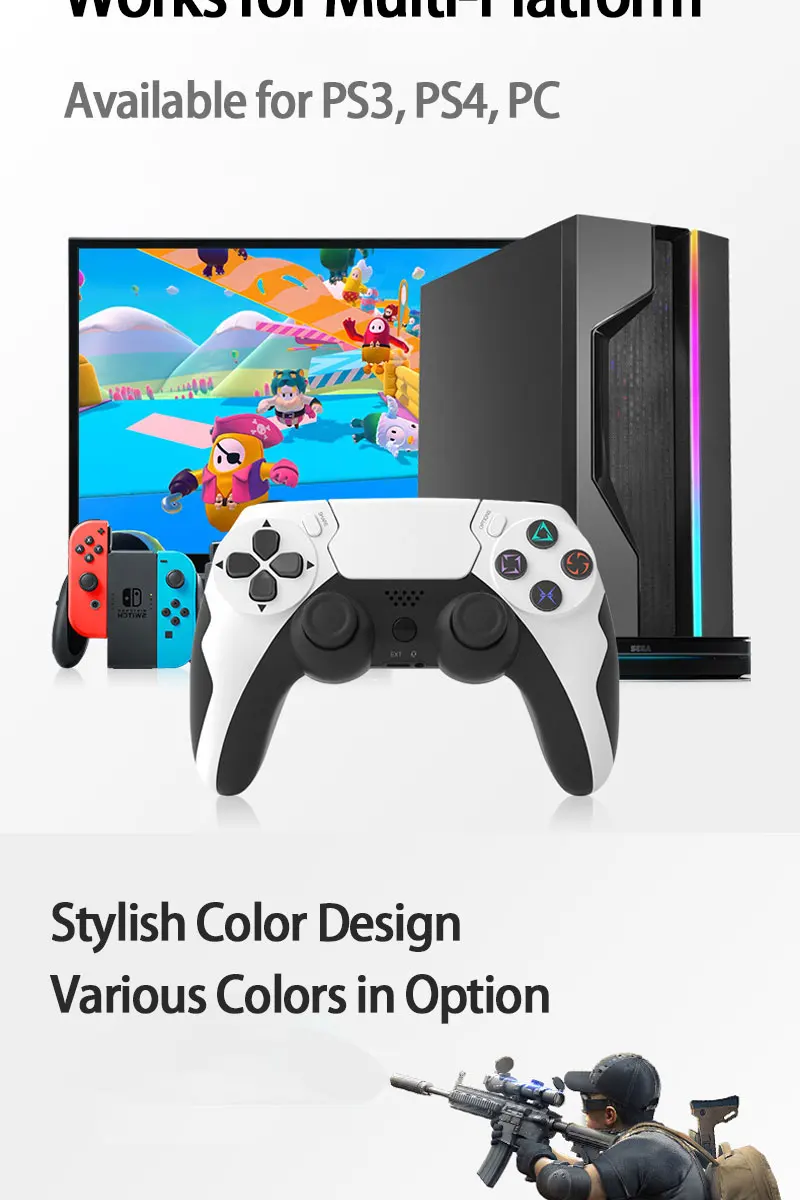 PS4 Slim Pro 콘솔용 더블 모터 진동 6 축 자이로스코프가 있는 세련된 무선 블루투스 P4 게임패드 컨트롤러