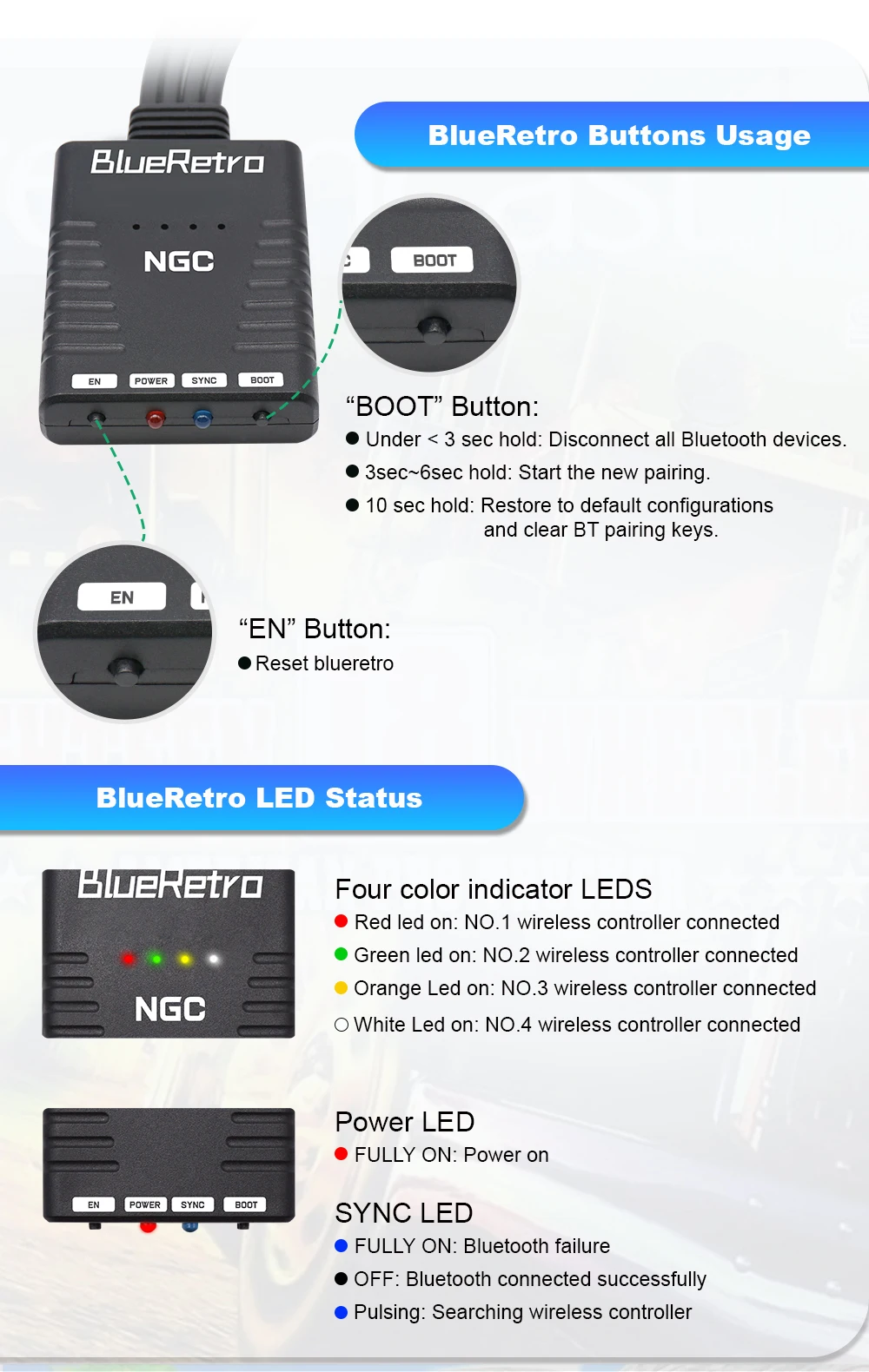 NGC 및 WII 콘솔용 BlueRetro 무선 컨트롤러 어댑터