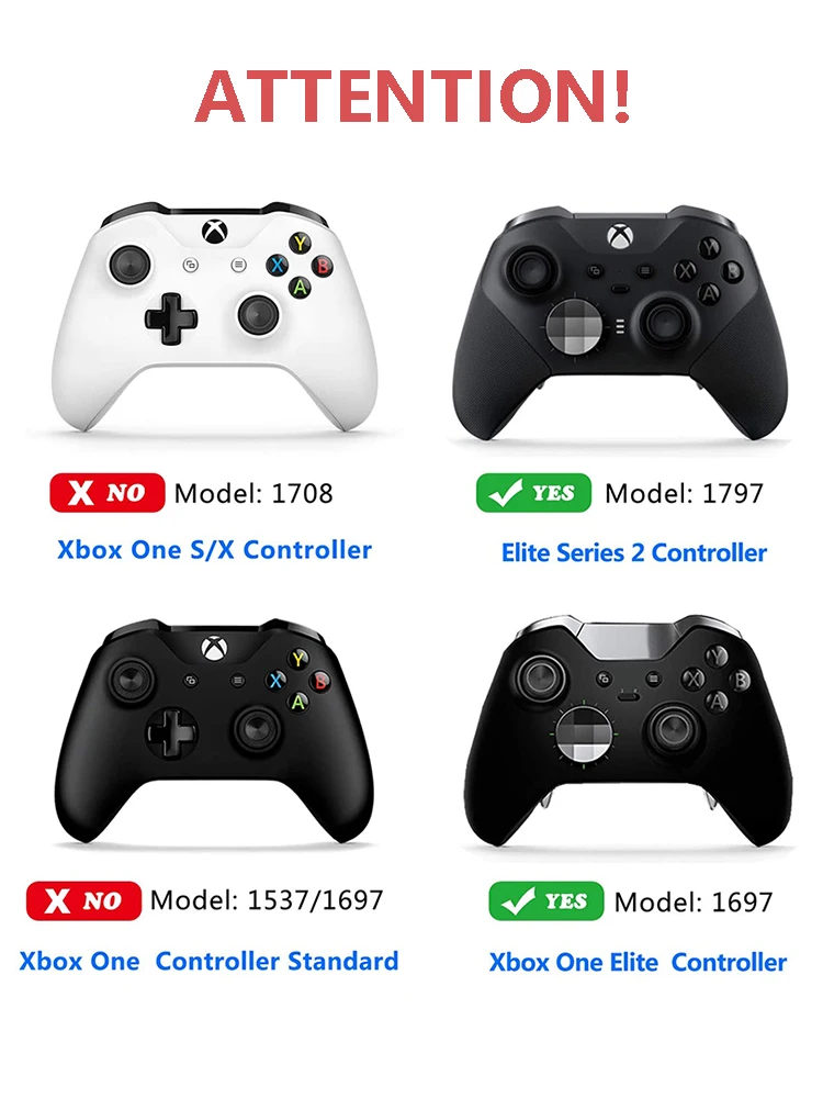 이 액세서리는 Xbox One Elite Series 2 컨트롤러에 적합하며 Xbox x/s 컨트롤러 및 Xbox One 컨트롤러 표준에는 적합하지 않습니다.