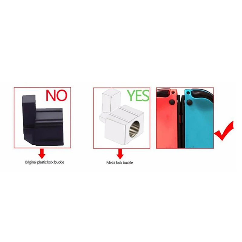 6. 금속 잠금 버클을 조이콘에 넣고 스프링을 슬롯에 밀어 넣습니다.