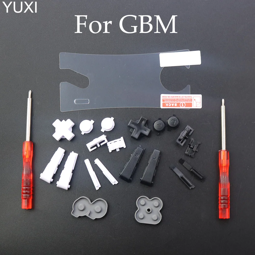 GBM 콘솔 쉘 버튼 교체 용 YUXI 실리콘 전도성 고무 패드 버튼 풀 세트 L R A B D 패드 키패드 버튼 도구 포함