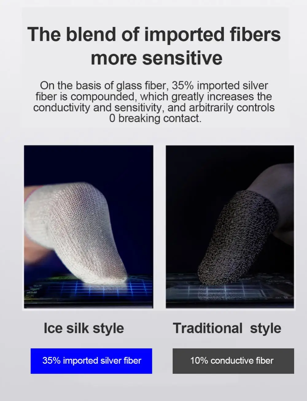 게임 손가락 커버 유리 실버 섬유 휴대 전화 게임 땀 방지 손가락 커버 게임 미끄럼 방지 손가락 장갑