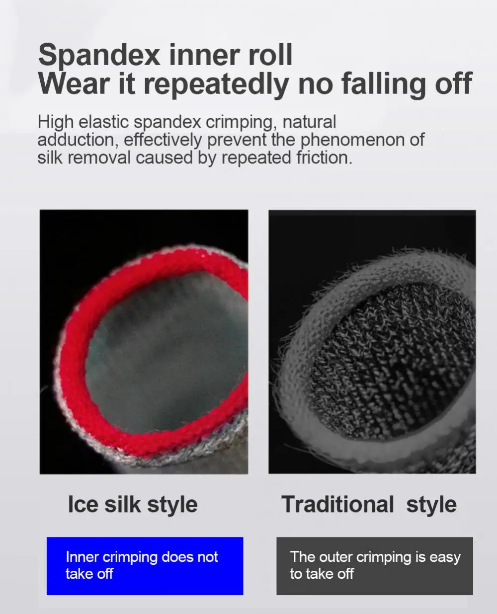 고탄성 스판덱스 헤밍은 자연스럽게 수축되어 반복적인 마찰로 인한 탈락 현상을 효과적으로 방지합니다.