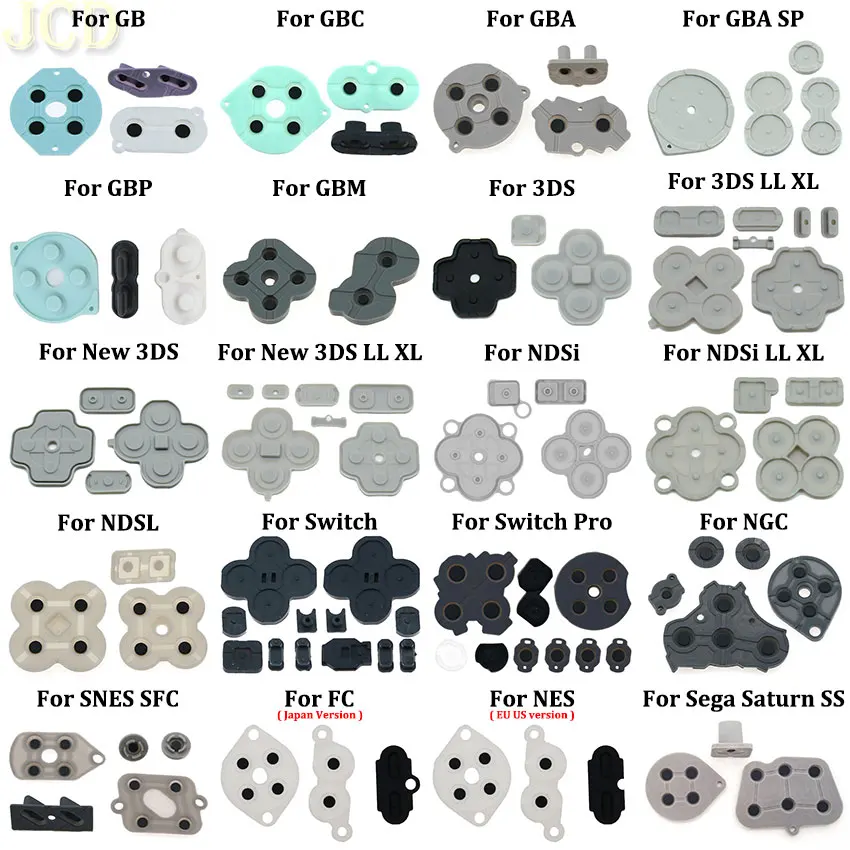 JCD 실리콘 고무 전도성 버튼 GB GBA SP GBC GBP GBM NDSL NDSi New 3DS LL XL NS 스위치 Pro NGC SNES NES