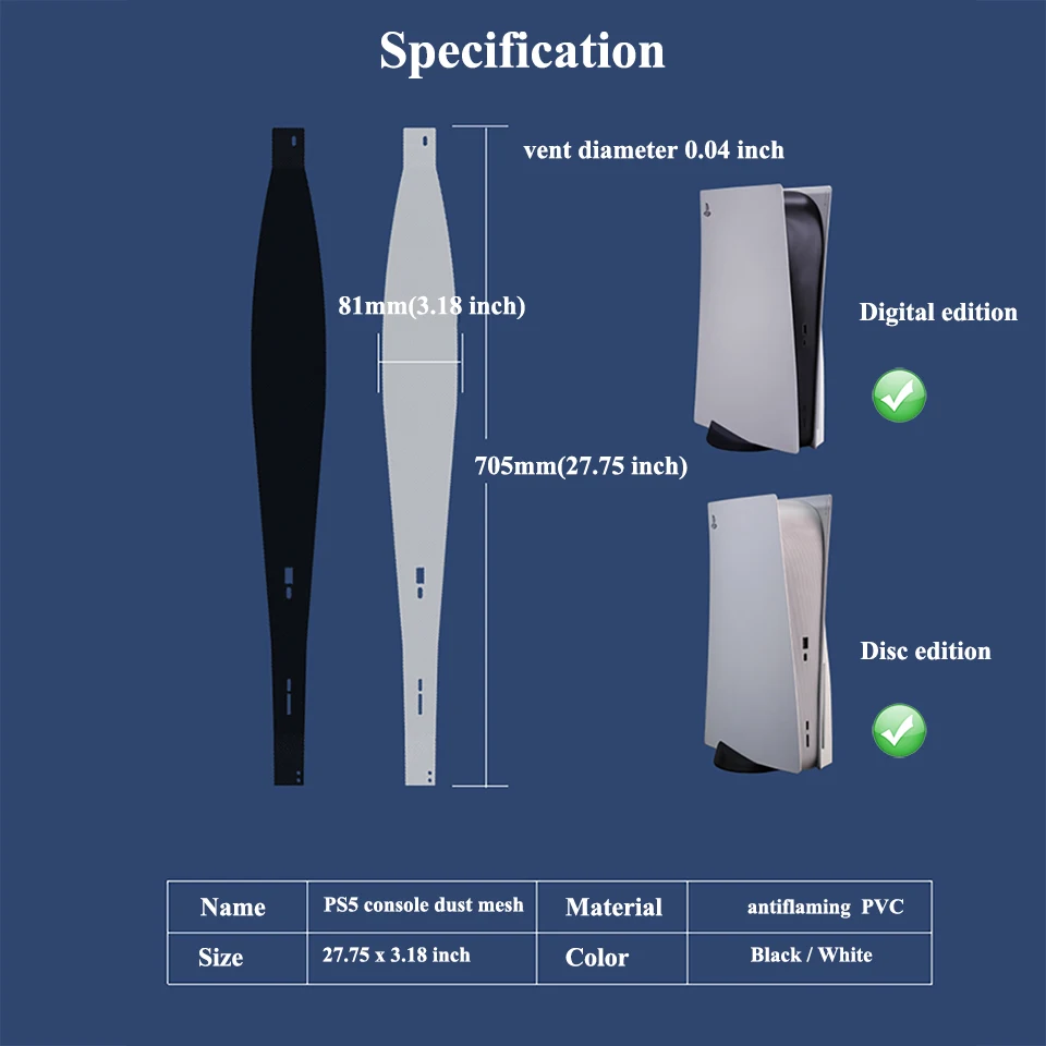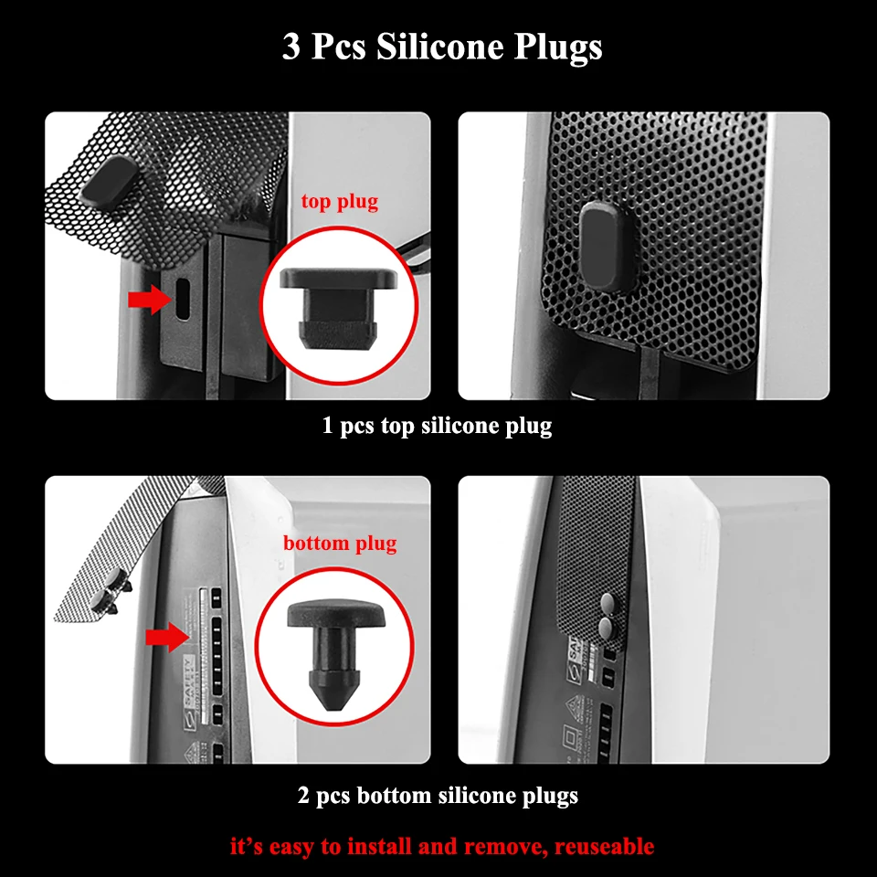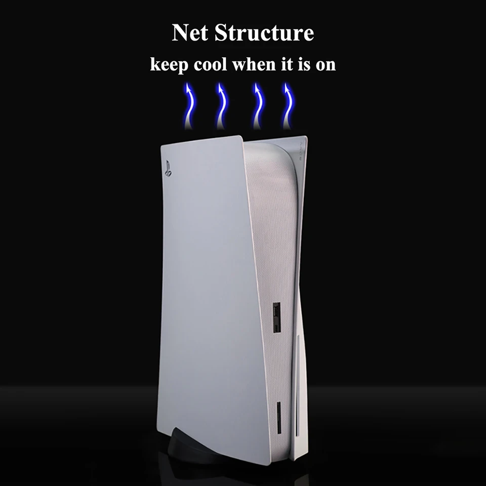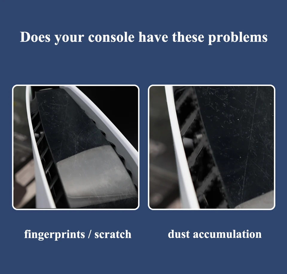 PS5 콘솔에 쌓이는 먼지와 애완동물 털을 줄이고 PS5 콘솔 중간 스킨에도 사용하여 긁힘과 지문을 방지할 수 있습니다.