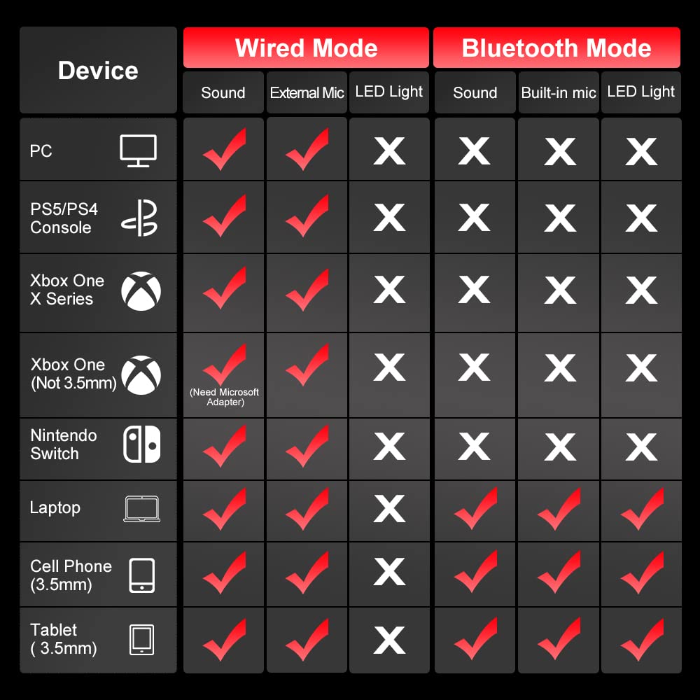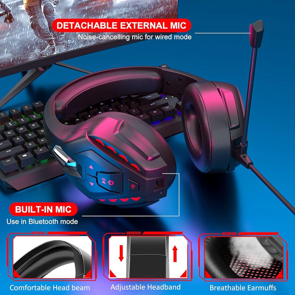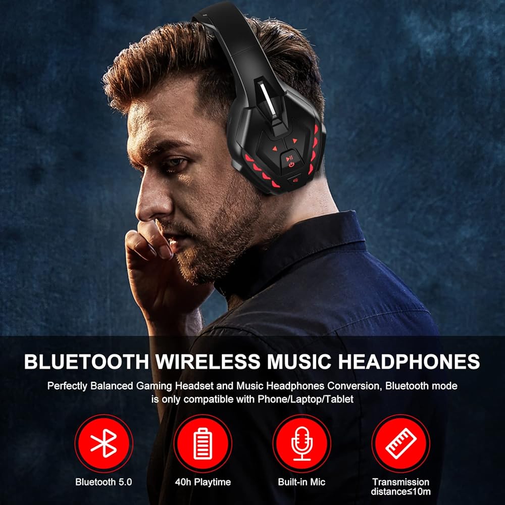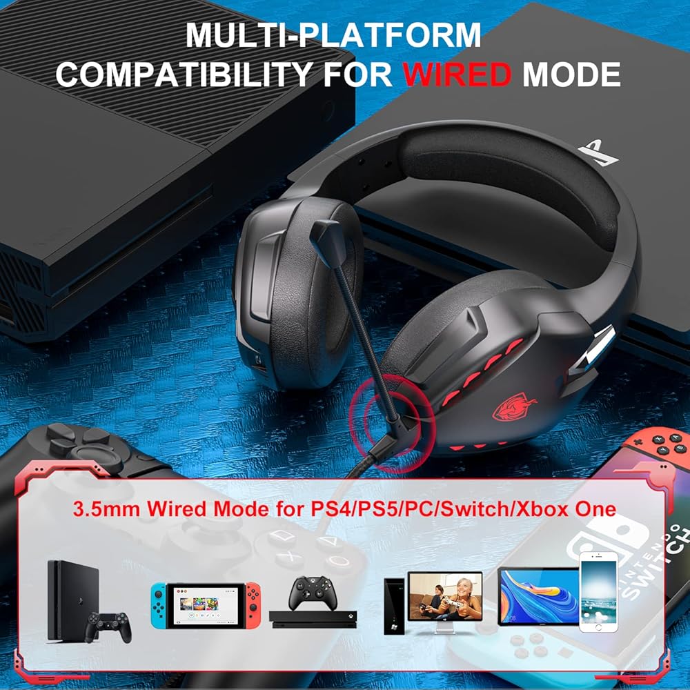PS4 PC 스위치용 포이니카스 PS5 게이밍 헤드셋 스테레오 사운드 탈착식 마이크 노트북/폰/태블릿용 무선