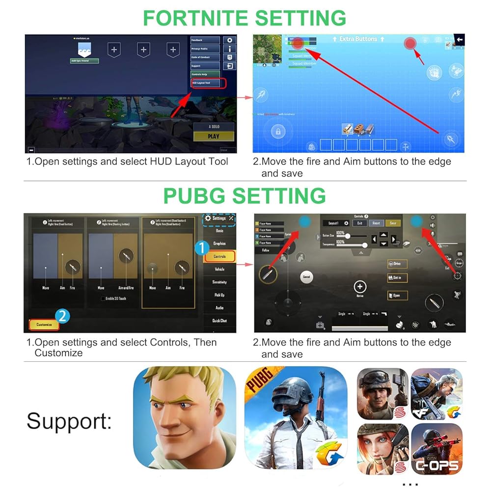 Ytuomzi 휴대폰 PUBG 게임 컨트롤러 L1R1 촬영 및 조준 트리거 조이스틱 인체공학적 게임패드: PUBG 모바일