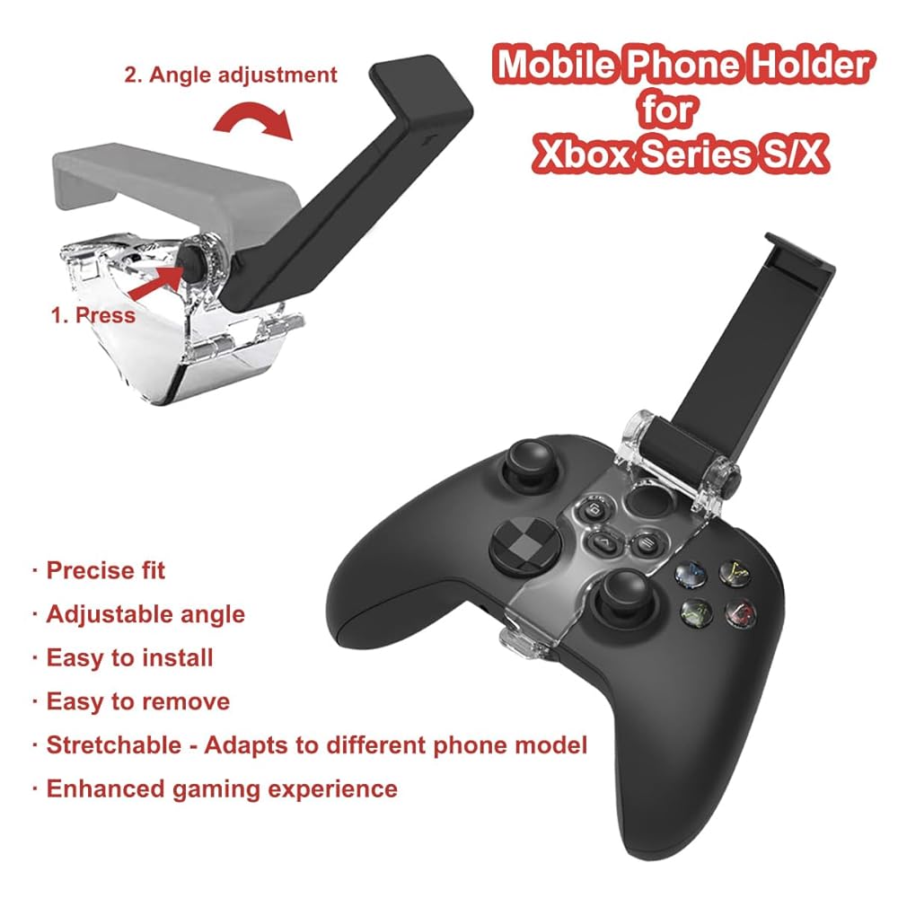 Xbox Series X 컨트롤러용 휴대폰 거치대 Xbox Series X/S 컨트롤러용 모바일 게이밍 클립 조절 가능한