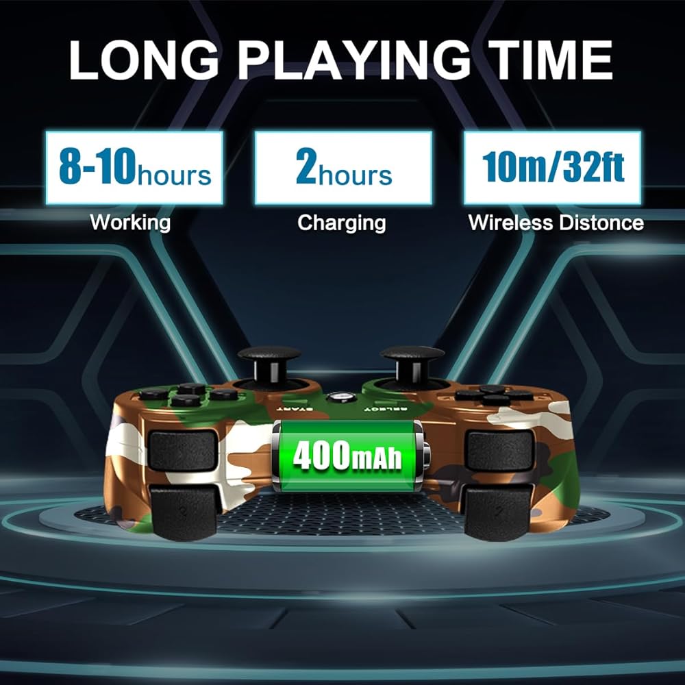 BUERTT PS3 컨트롤러 무선 2팩 PS3 6축 모션 이중 진동 USB 충전 케이블(카모 레드 및 카모 그린)을 위한
