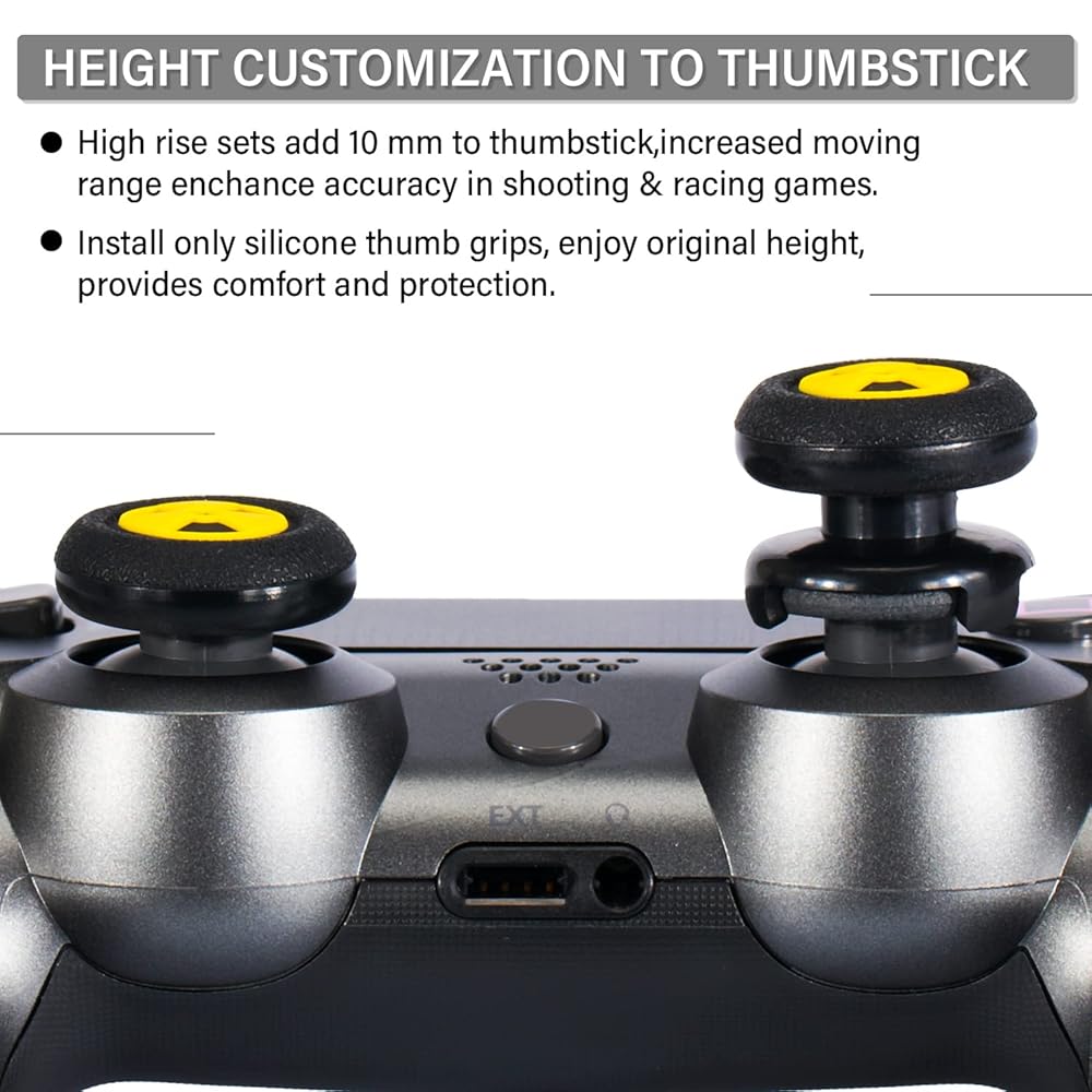 플레이렐름 FPS 엄지스틱 익스텐더 및 3D 텍스처 고무 실리콘 그립 커버 2세트 PS5 듀얼센 및 PS4 컨트롤러