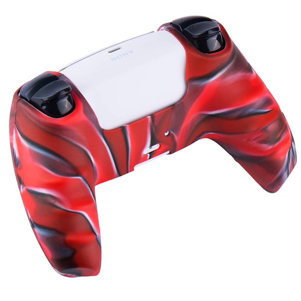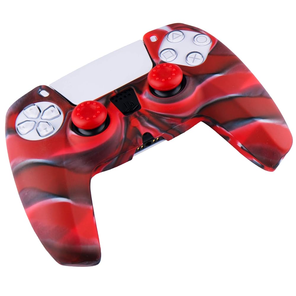 YoRHa 실리콘 고무 젤 PS5 컨트롤러(카모플라주 레드 블루 그린) x 3 엄지 그립 x 6용 스킨 커버 커스터마