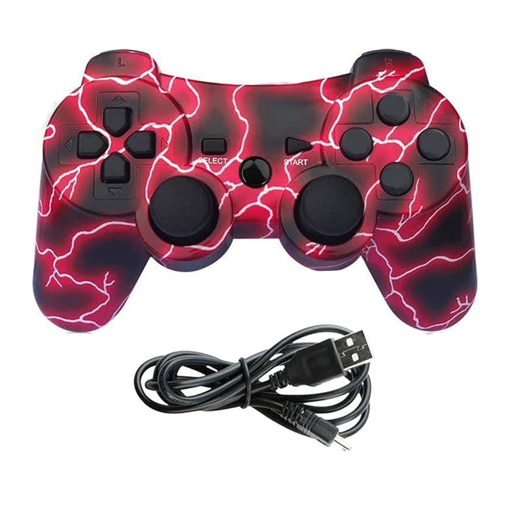 PS3용 링크셰어 무선 컨트롤러 충전 코드(전기 빨간색)가 있는 플레이스테이션 3용 더블 진동 블루투스