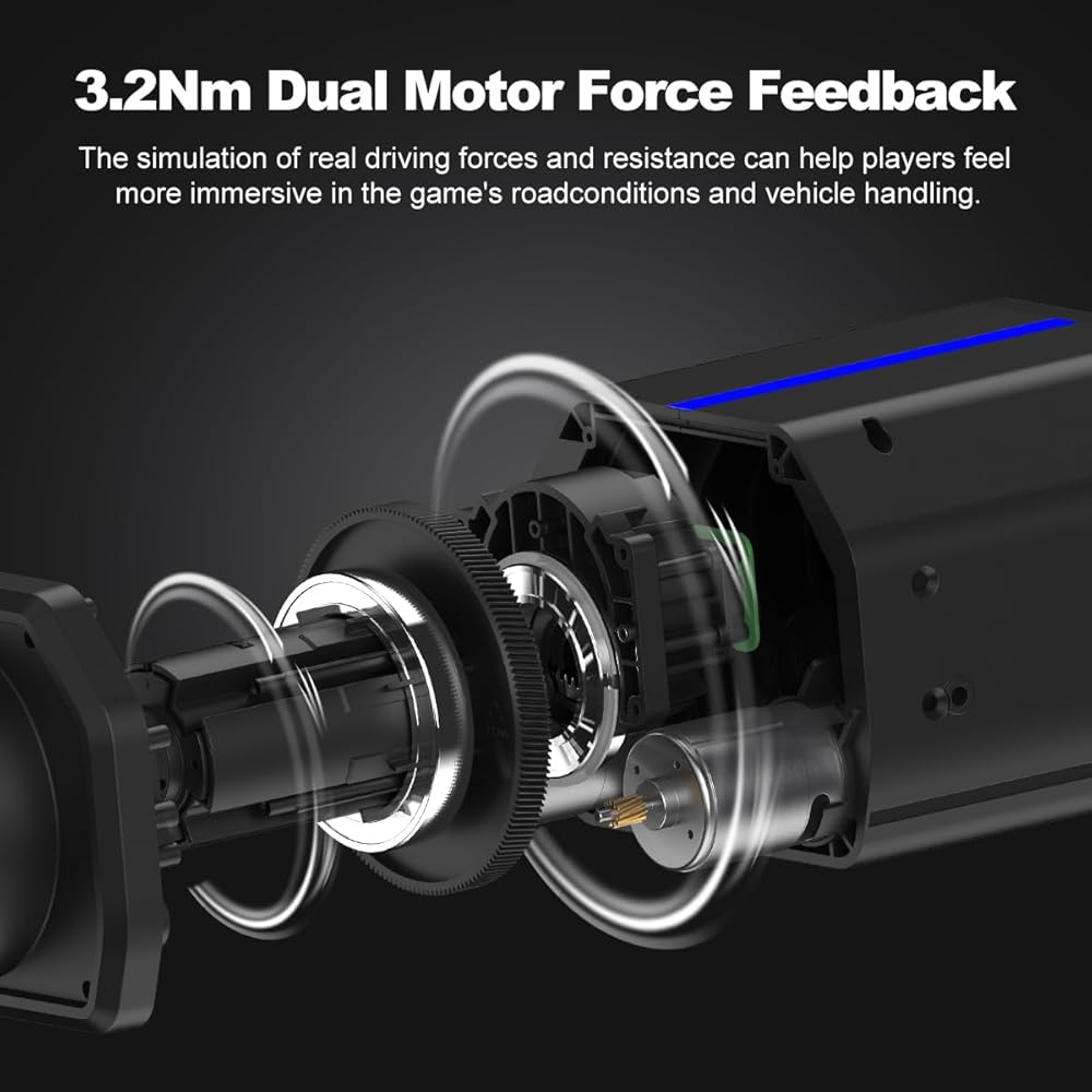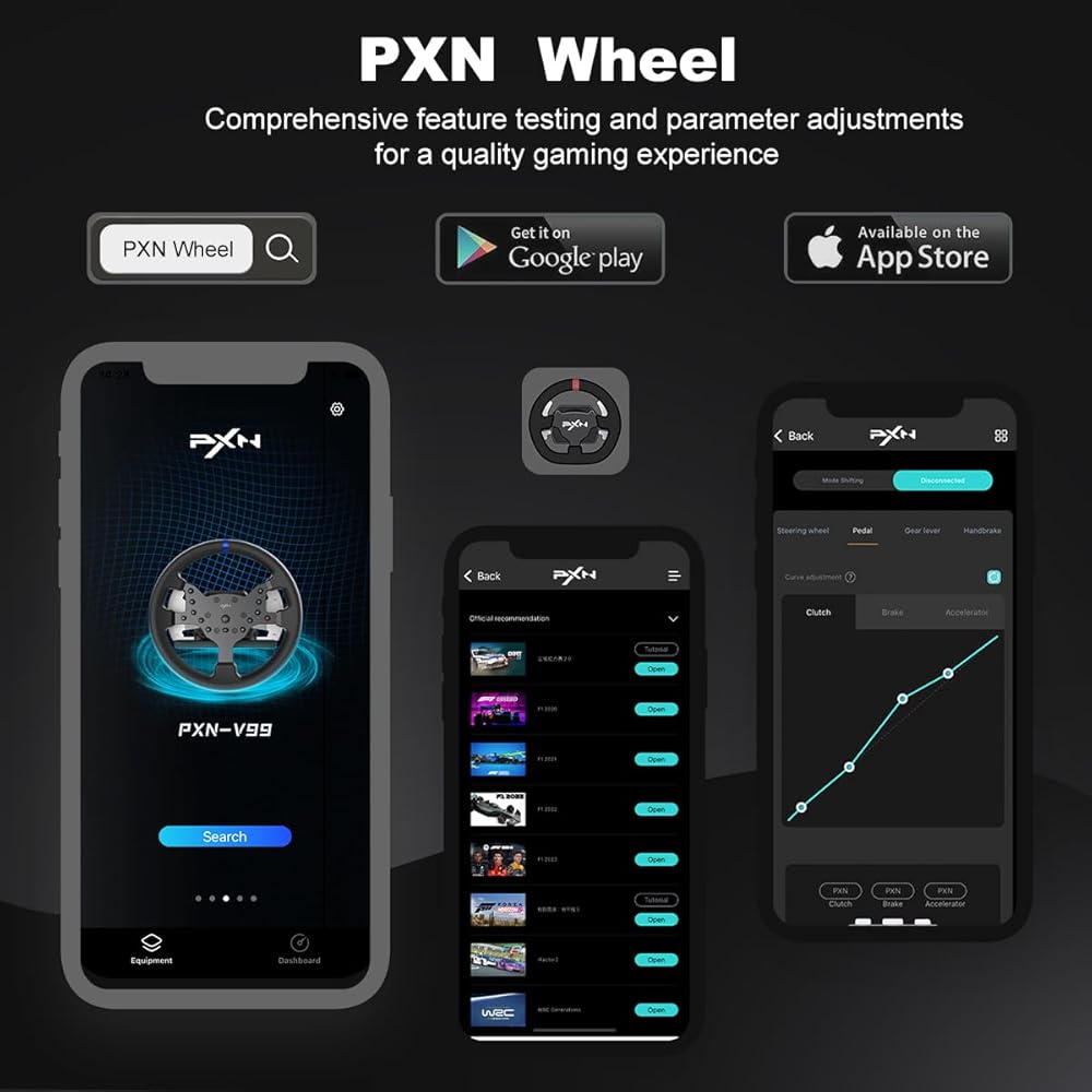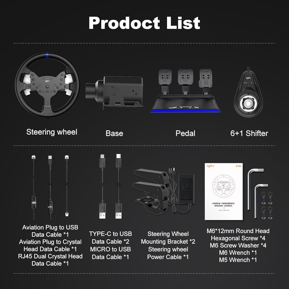 PXN V99 구동력 스티어링 휠 3.2Nm 듀얼 모터 힘 피드백 베이스 시프터 및 페달이 있는 11.8인치 TPR 고무