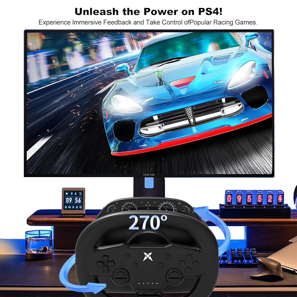 DOYO PS4 스티어링 휠 및 페달 듀얼 진동 모터가 장착된 270도 무선 게임 레이싱 휠 PC용 프로 레이싱 휠