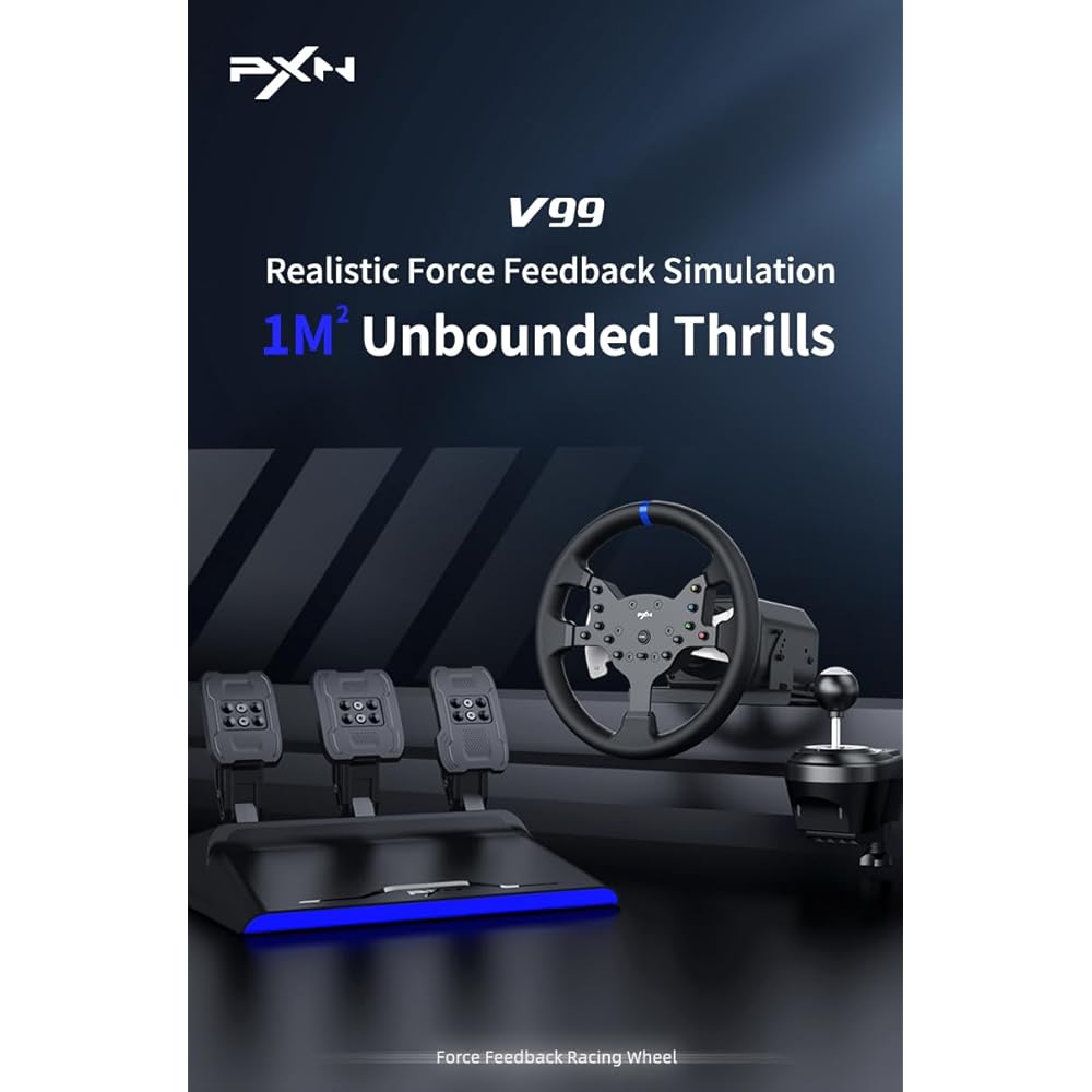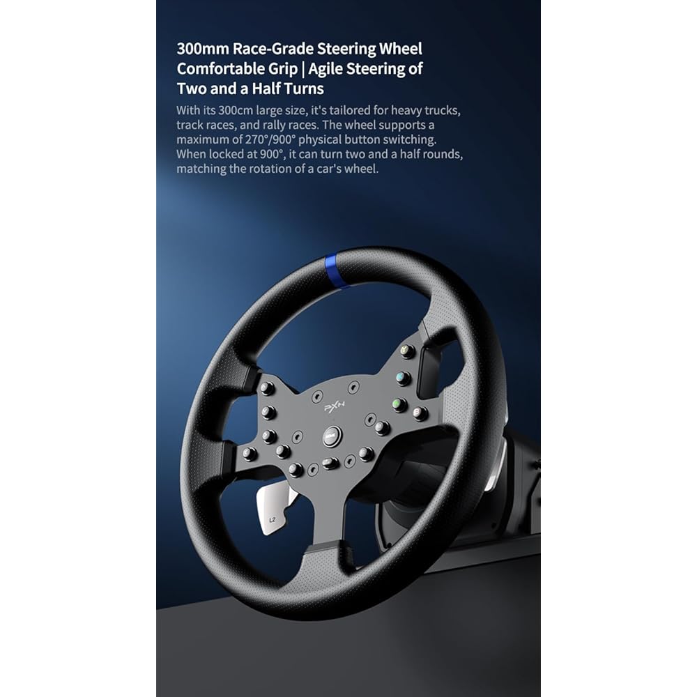 PXN-V99 게이밍 스티어링 휠 3.2nm 힘 피드백 레이싱 휠 270/900 해체 홀 자기 유도 페달 장착 PC PS4 X-ON