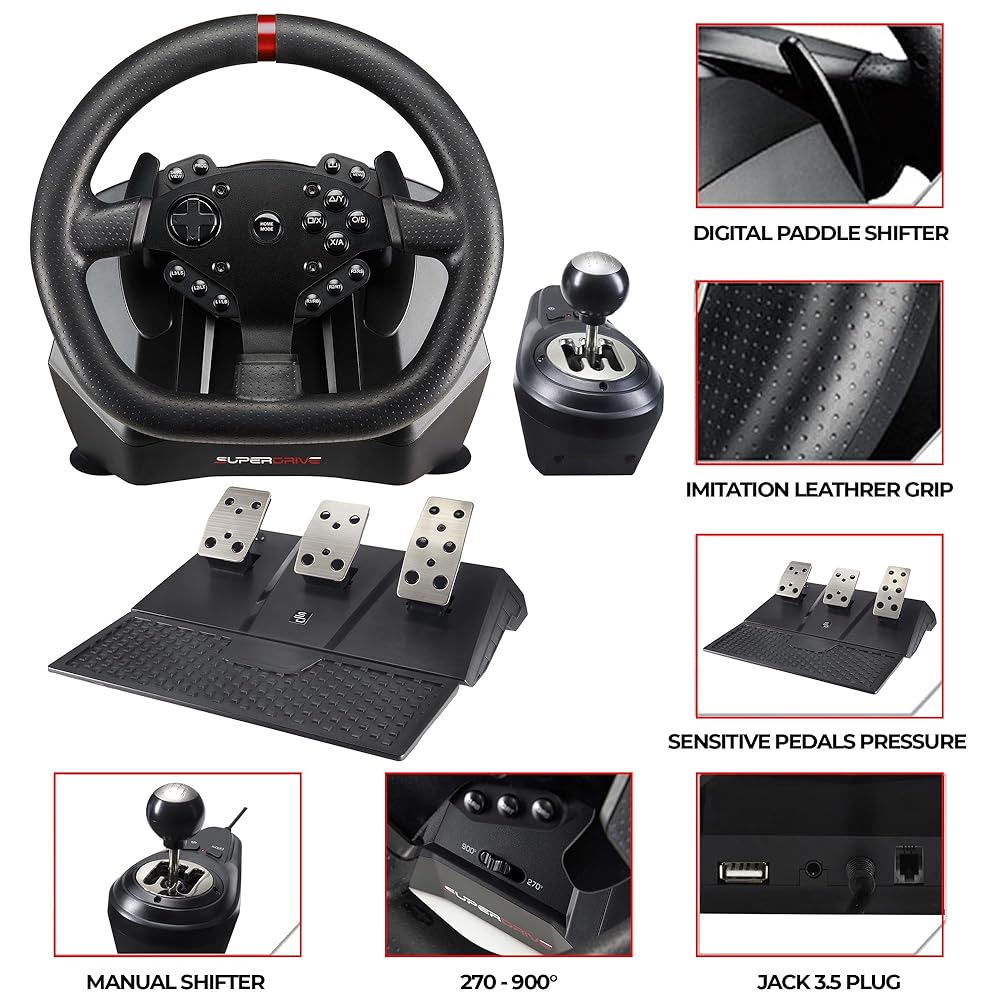 슈퍼드라이브 - 수동 시프터 3개의 페달 및 패들 시프터가 장착된 GS950-X 900 스티어링 휠(Xbox Serie X/S