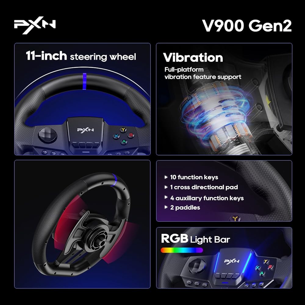 PXN - V900 GEN2 레이싱 스티어링 휠 270 - 900 회전 PC PS4 PS3 스위치 Xbox One Xbox Series X/S용 페달