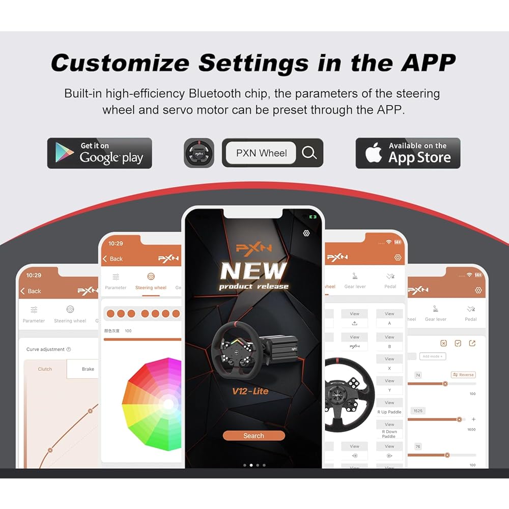 PXN V12 라이트 게이밍 스티어링 휠 - 페달 데스크톱 마운팅 클립 패들 시프터 PC PS4 및 Xbox용 드라이빙