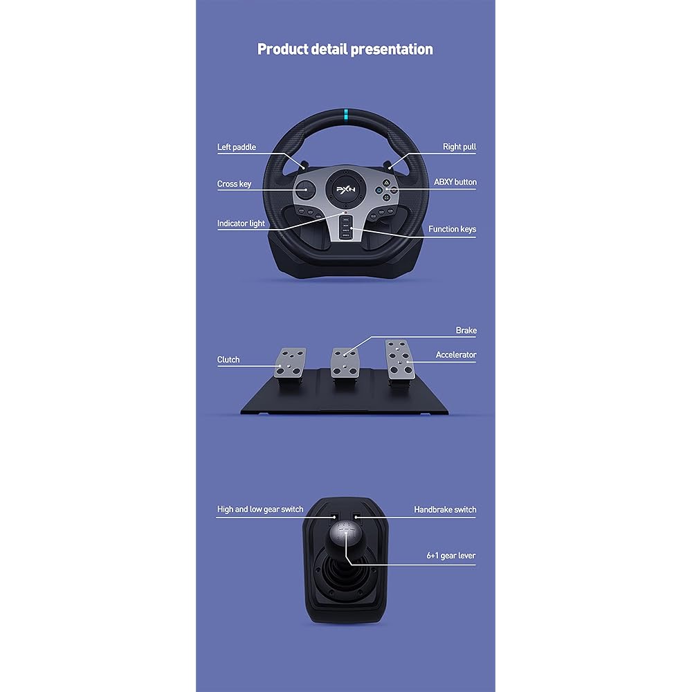 PC PS4 PS3 Xbox One Xbox Series X/S N-Switch용 페달 및 시프터 270/900도 게이밍 레이싱 휠이 장착된 PX