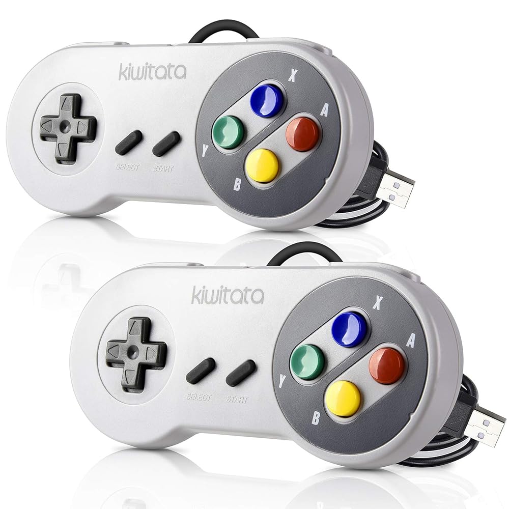 KIWITATA PC/Mac/Linux용 2팩 레트로 SNES 컨트롤러 - Windows/RetroPie와 호환되는 클래식 유선 USB 슈퍼